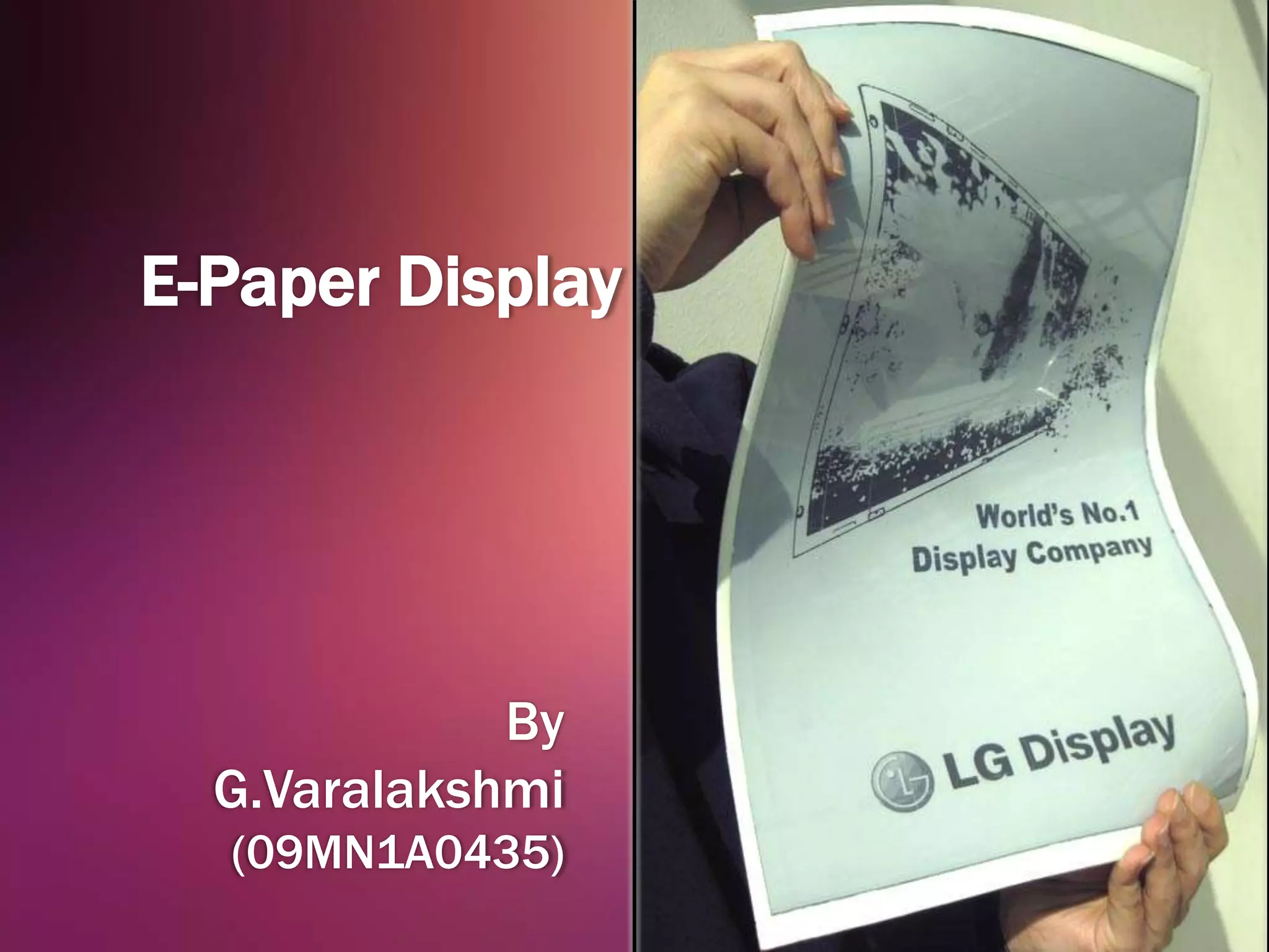 This document discusses e-paper displays. E-paper is a portable, reusable electronic display that uses e-ink technology and is non-backlit. It works by applying a voltage to migrate charged particles and form visible images. E-paper comes in both flexible and non-flexible types and has applications in digital tags, price boards, books, newspapers, magazines, and mobile phones. It offers advantages like flexibility, low power consumption, and reduced paper usage. Challenges include less attractive visuals compared to LCD and difficulty reading in low light. The future potential of e-paper includes digitizing textbooks and changing how news is delivered.