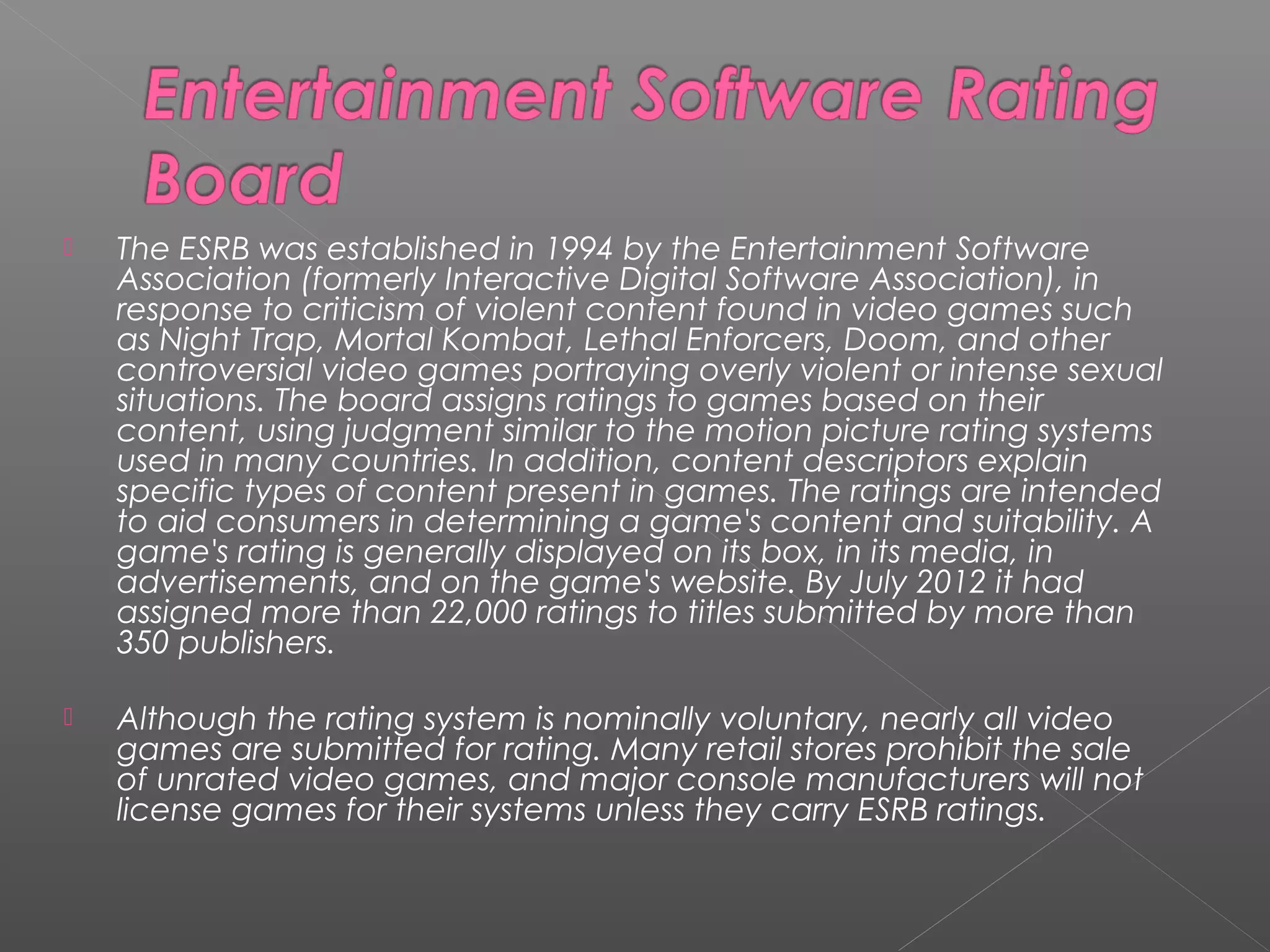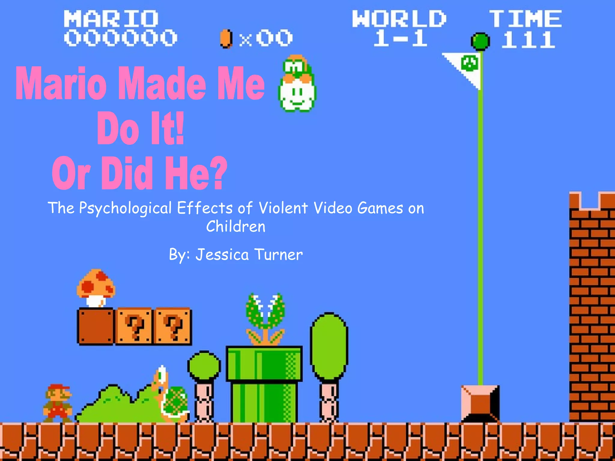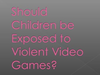 The document discusses the psychological effects of violent video games on children. It describes several studies that found negative effects such as increased aggressive behavior, decreased empathy, and increased physiological arousal from playing violent video games. However, it also notes that some research has found no causal link and that correlations may be better explained by other factors like preexisting aggression. The document presents arguments on both sides of the issue without taking a clear stance.