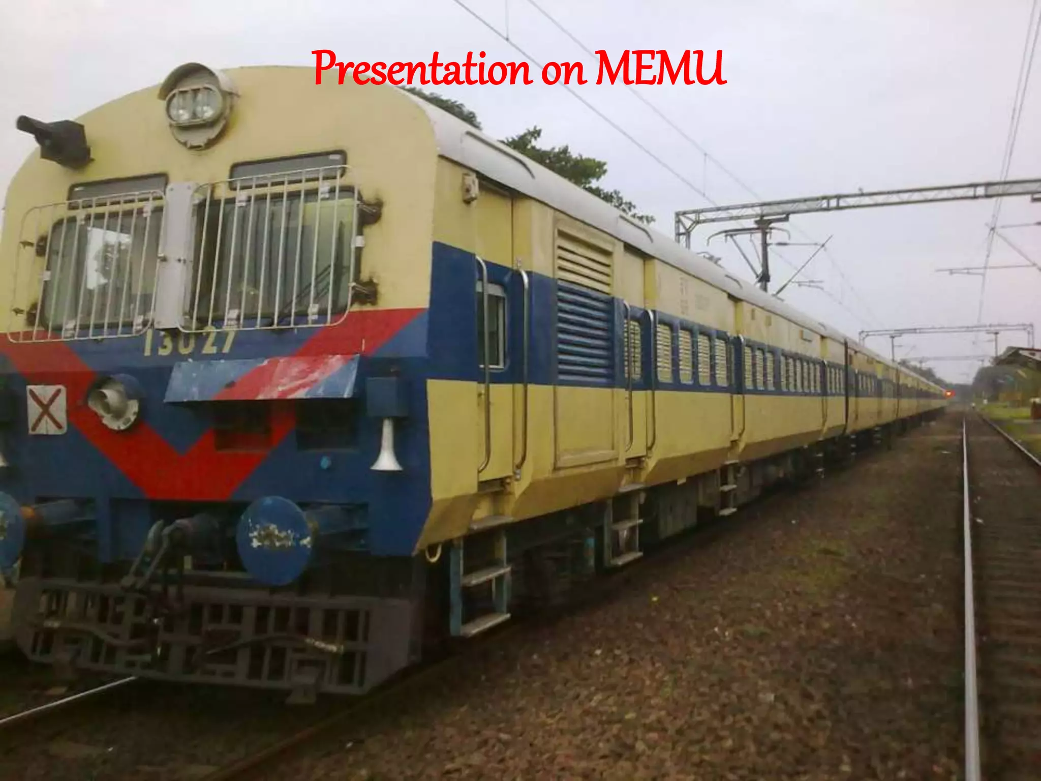This document provides an overview of the Mainline Electric Multiple Unit (MEMU) rail system in India. It describes key components of the MEMU including the pantograph that collects power from overhead wires, main transformers that step down voltages, rectifiers that convert AC to DC for traction motors, and auxiliary systems like lighting, compressors, and a battery. The summary highlights the purpose of the MEMU for semi-urban and rural passenger service and provides a high-level view of the electrical systems and components that power and control the trains.