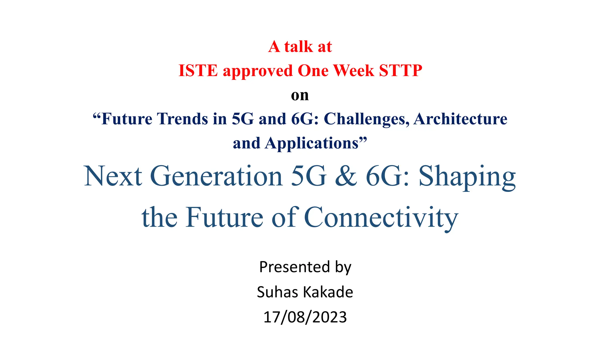 This document provides an overview of a talk on future trends in 5G and 6G wireless technology. It discusses the evolution from 1G to 5G mobile networks and the key capabilities of 5G such as speeds up to 1 Gbps. 6G is envisioned to enable holographic communication, be integrated with AI, and support a wide range of new applications through delivering ultra-high reliability and low latency. Critical research areas for 6G include new spectrum bands, advanced physical layer techniques like holographic radio, and achieving the key performance targets needed for services like telepresence.
