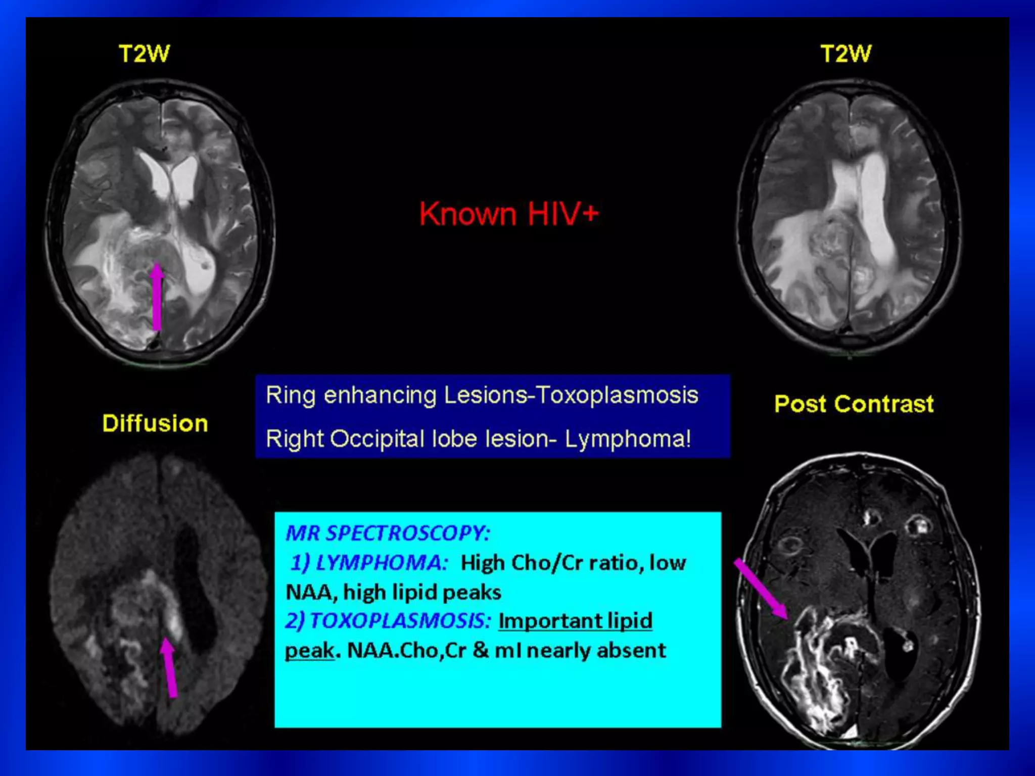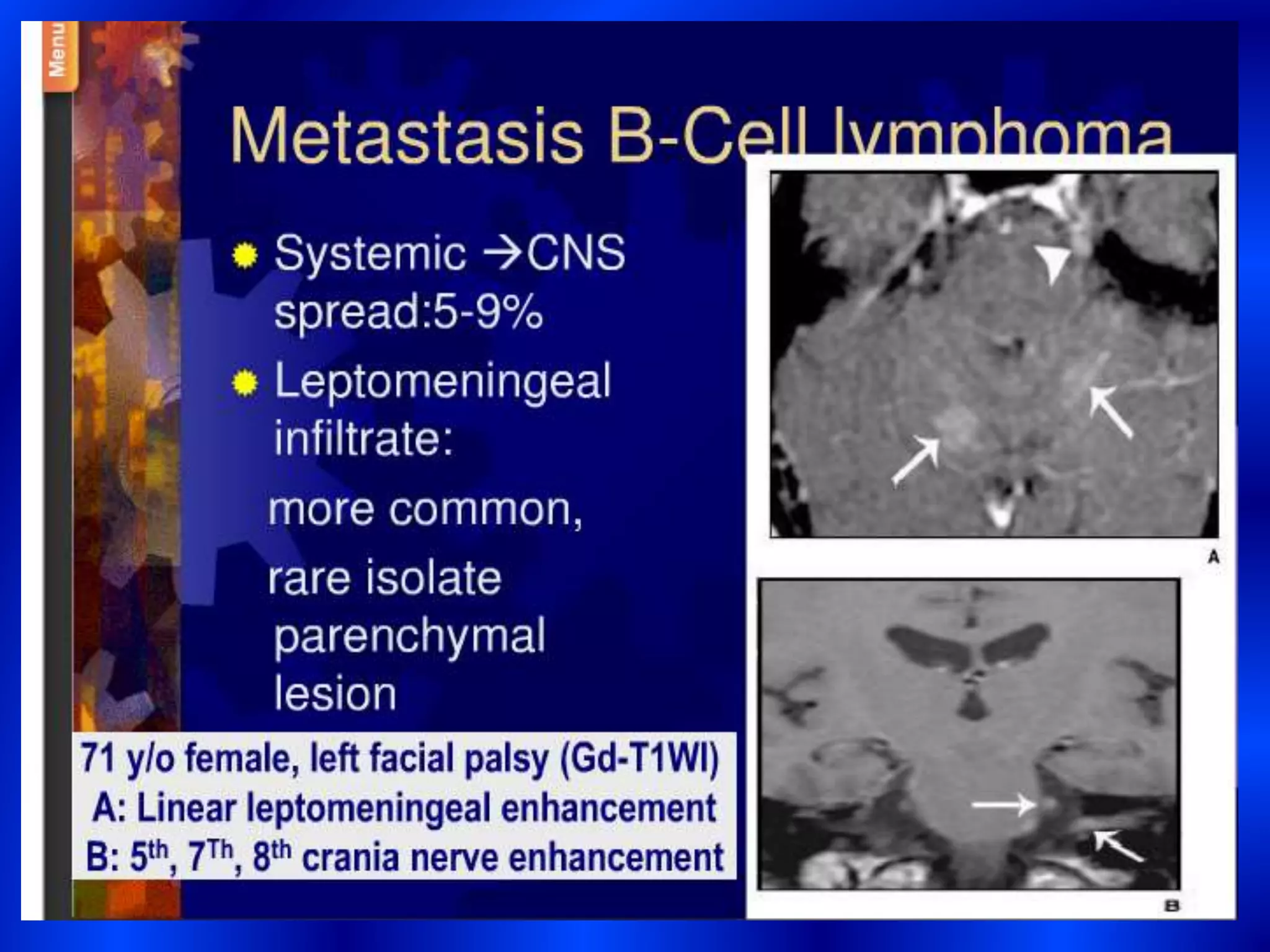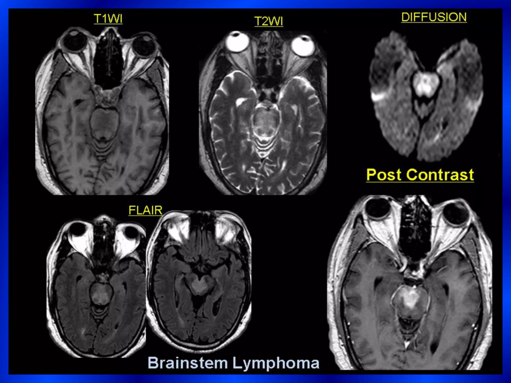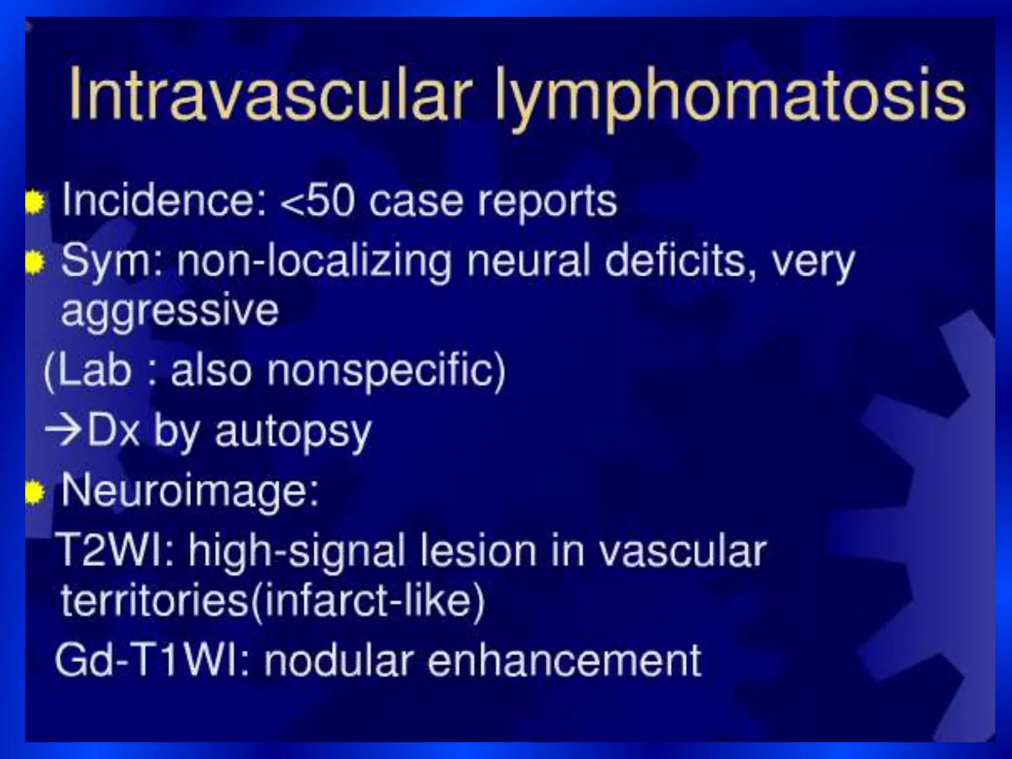 Primary central nervous system lymphoma (PCNSL) refers to lymphoma isolated to the brain and spinal cord. Imaging plays an important role in diagnosis. On CT, PCNSL typically appears as a hyperdense, solitary mass without necrosis or hemorrhage. On MRI, it has intermediate-low T1 signal, iso-hypointense T2 signal, and homogeneous enhancement. Location is commonly the supratentorial white matter. In immunocompromised patients, PCNSL can appear atypical with multiple lesions, necrosis, and heterogeneous enhancement. Advanced techniques like perfusion MRI and PET can aid in differentiating PCNSL from other tumors like glioblastoma and metastasis.