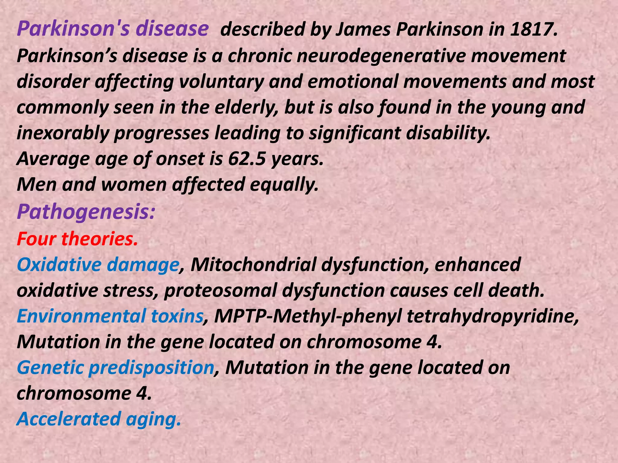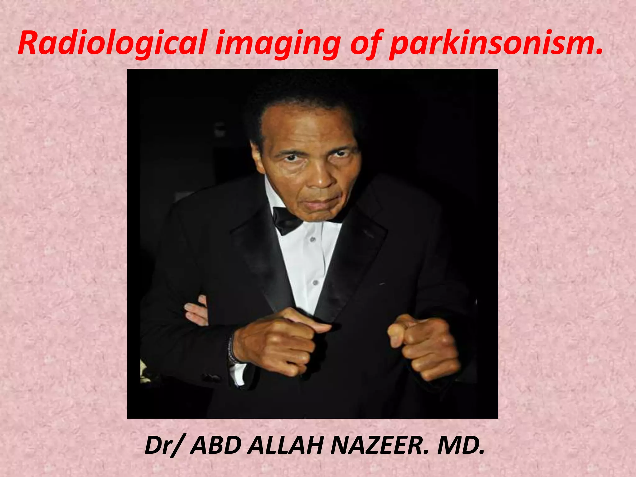 This document discusses Parkinson's disease and parkinsonism. It covers the pathogenesis, classification, clinical features, investigations and imaging findings of Parkinson's disease and other conditions that can cause parkinsonian symptoms. Imaging plays an important role in the diagnosis and differential diagnosis of parkinsonism. Techniques like DAT imaging and MRI can help differentiate Parkinson's disease from other neurodegenerative diseases and conditions.