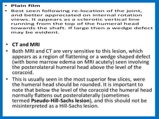 MRI of the shoulder can be useful for evaluating several clinical scenarios involving shoulder pain, trauma, impingement, instability, or limited range of motion. It allows visualization of bones, articulating surfaces, tendons, ligaments, labrum, bursae and other soft tissues. Common findings on MRI of the shoulder include tendinopathy, full and partial thickness rotator cuff tears, bursitis, and labral tears.