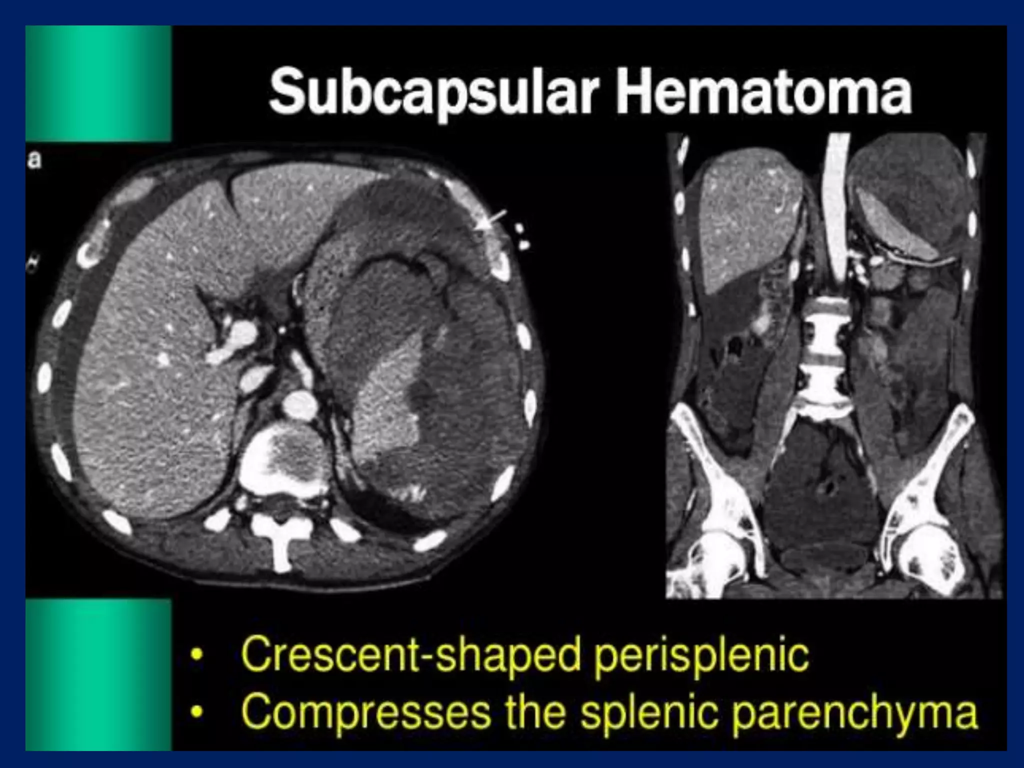 This document discusses imaging of the spleen and summarizes various congenital anomalies and pathologies that can affect the spleen. Some common congenital anomalies mentioned include accessory spleens, asplenia, polysplenia, and splenic fusions. Acquired conditions like repeated infarctions, infiltration, tumors, and cysts can also cause splenomegaly or functional asplenia. Wandering spleen is discussed as a rare congenital anomaly where the spleen lacks attachments and is mobile within the abdomen. Various grades of splenic lacerations and examples of splenic imaging findings are also briefly summarized.