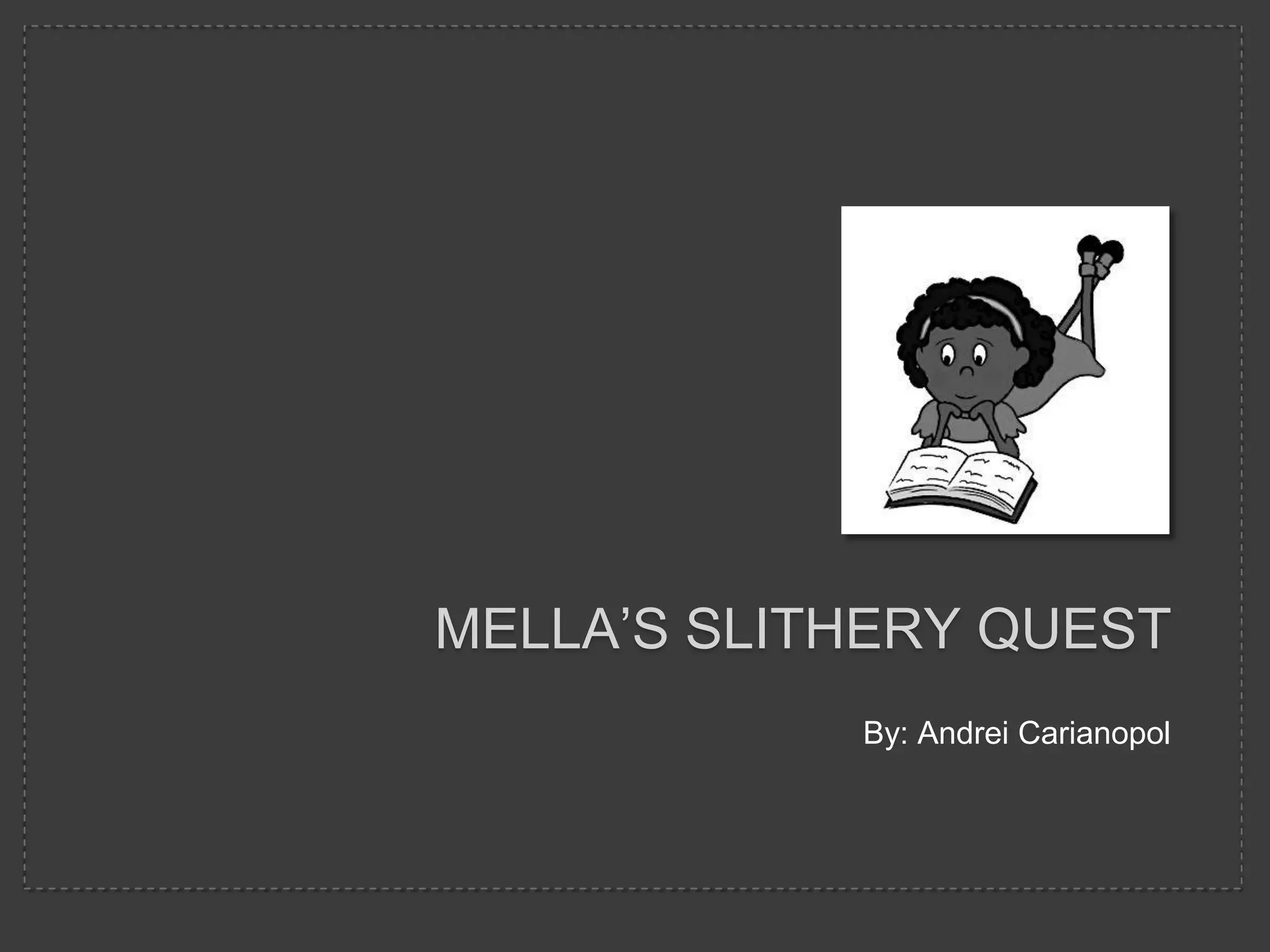 Mella is a young African girl who lives in a village with her family. Her father falls gravely ill, so Mella embarks on a dangerous journey through the jungle to seek help from the legendary Python Healer. After four difficult days of travel, Mella finds the python's cave and convinces the serpent to come heal her father. With the python's magic, her father recovers. Mella then escorts the python back to its home, and is rewarded for her courage and kindness.
