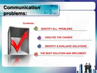 1. Identify all problems such as unclear reporting structure and lack of feedback.