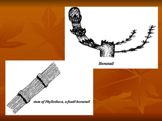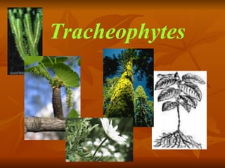 Tracheophytes, or vascular plants, have specialized tissues called xylem and phloem that allow them to transport water and nutrients throughout the plant. They are divided into three classes: ferns, gymnosperms, and angiosperms. Ferns have vascular bundles and reproduce via spores, while gymnosperms like conifers and cycads reproduce using naked seeds. Angiosperms, which include flowering plants, have fruits containing seeds and complex vascular tissue.