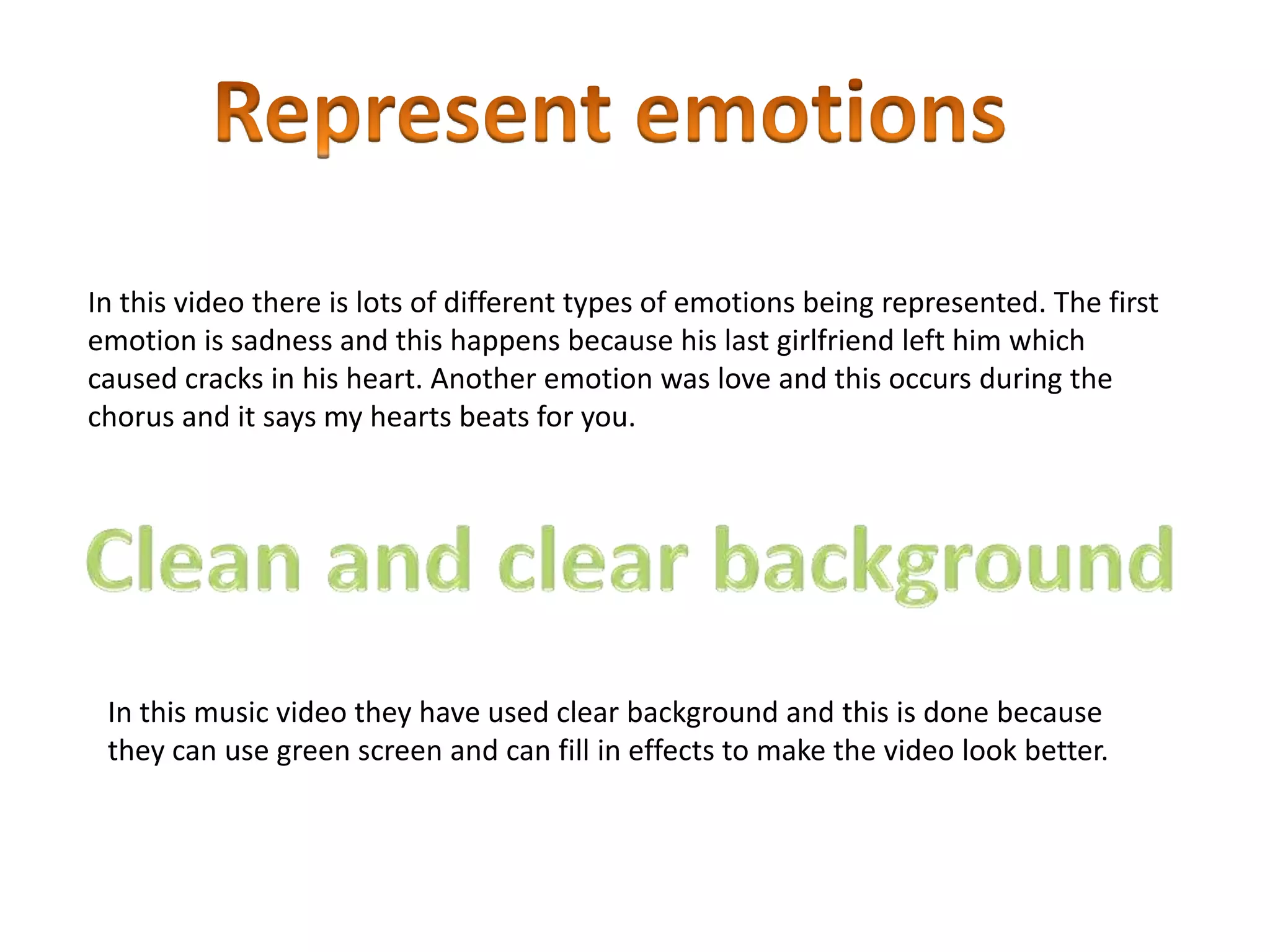 The music video tells a story of sadness and love through the artist's performance and visual effects. It focuses on the artist mimicking the song about a broken heart caused by a lost love. Various effects are used, including changes to the artist's voice, linked instruments, moving shadows, and green screen backgrounds with added hearts to enhance the narrative of a brokenhearted man. The overall goal is to engage the audience and make them feel like they are experiencing the artist's emotions about a past relationship.