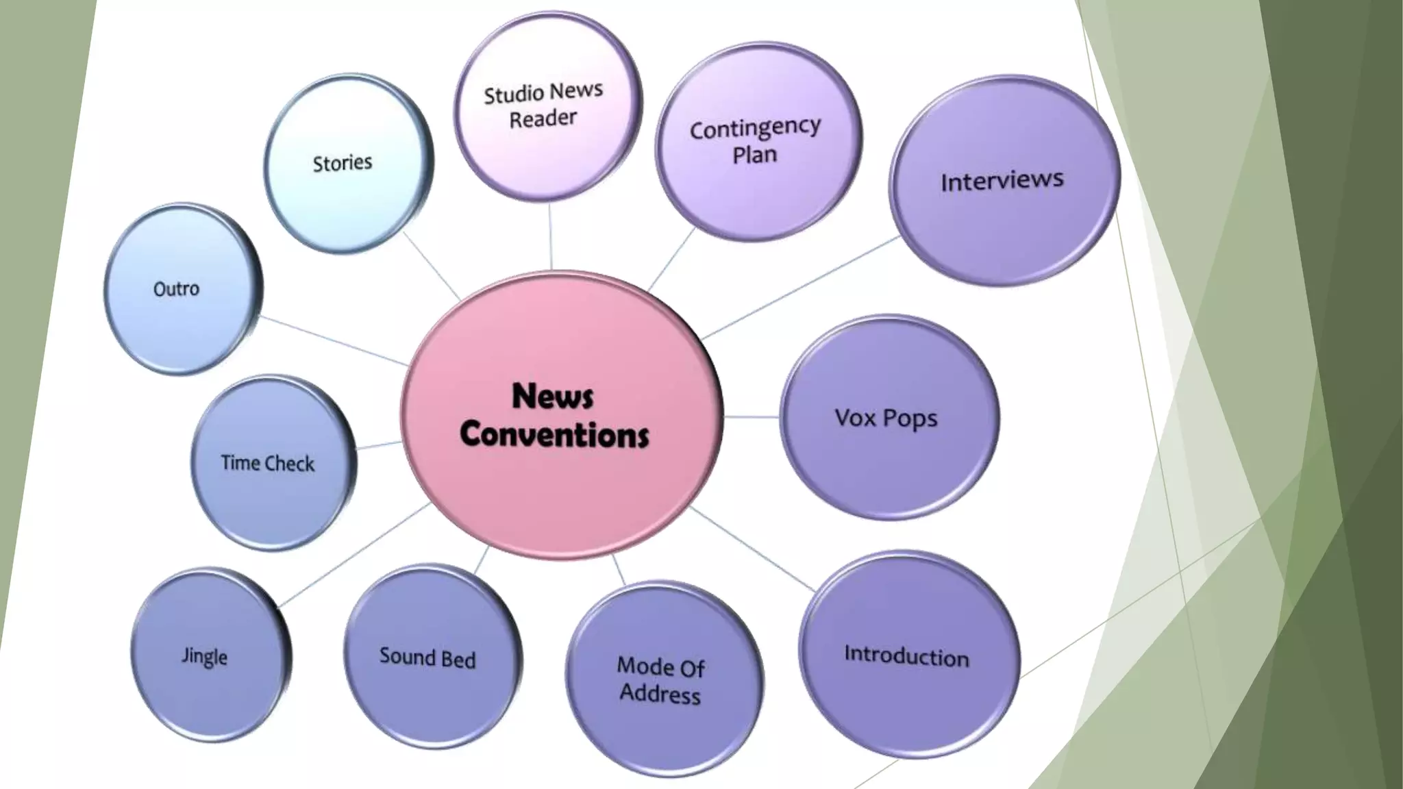 This document outlines the key components of a news radio program, including the presenter who delivers scripts and stories on hard news, soft news, offbeat stories, and sports. It also discusses contingency plans, introductions, outros, addressing the audience appropriately, conducting interviews, getting public opinions, time checks to keep the bulletin at 5 minutes, using background music without obscuring the presenter, and creating a custom jingle.