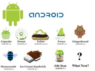 Android is an open-source software platform and operating system for mobile devices based on the Linux kernel. It was developed by Android Inc which was purchased by Google in 2005. The document then discusses the history and versions of Android, its architecture including core applications and features, software development using Java and SDK, advantages like multitasking and disadvantages like potential for malware. It concludes that Android is a free, open platform used widely in the global mobile market.