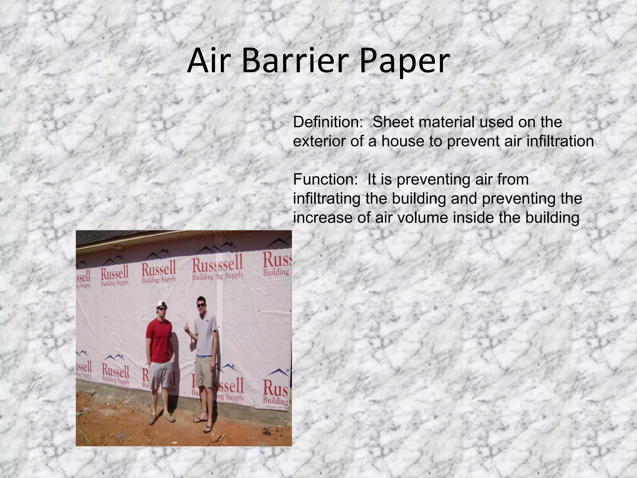 This document defines and describes various building materials and components used in construction. It provides definitions for items like air barriers, attic ventilation components, backhoes, batter boards, brick bonds and arches, concrete joints, doors, electrical components, framing elements, insulation, plumbing fixtures, roofing materials, siding materials, steep roof components, stone masonry, vapor retarders, waterproofing, windows, and more. Each term is concisely defined or described.