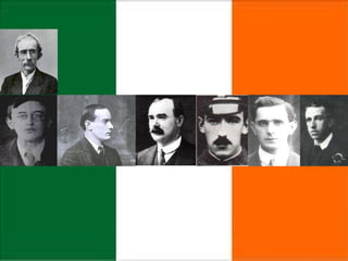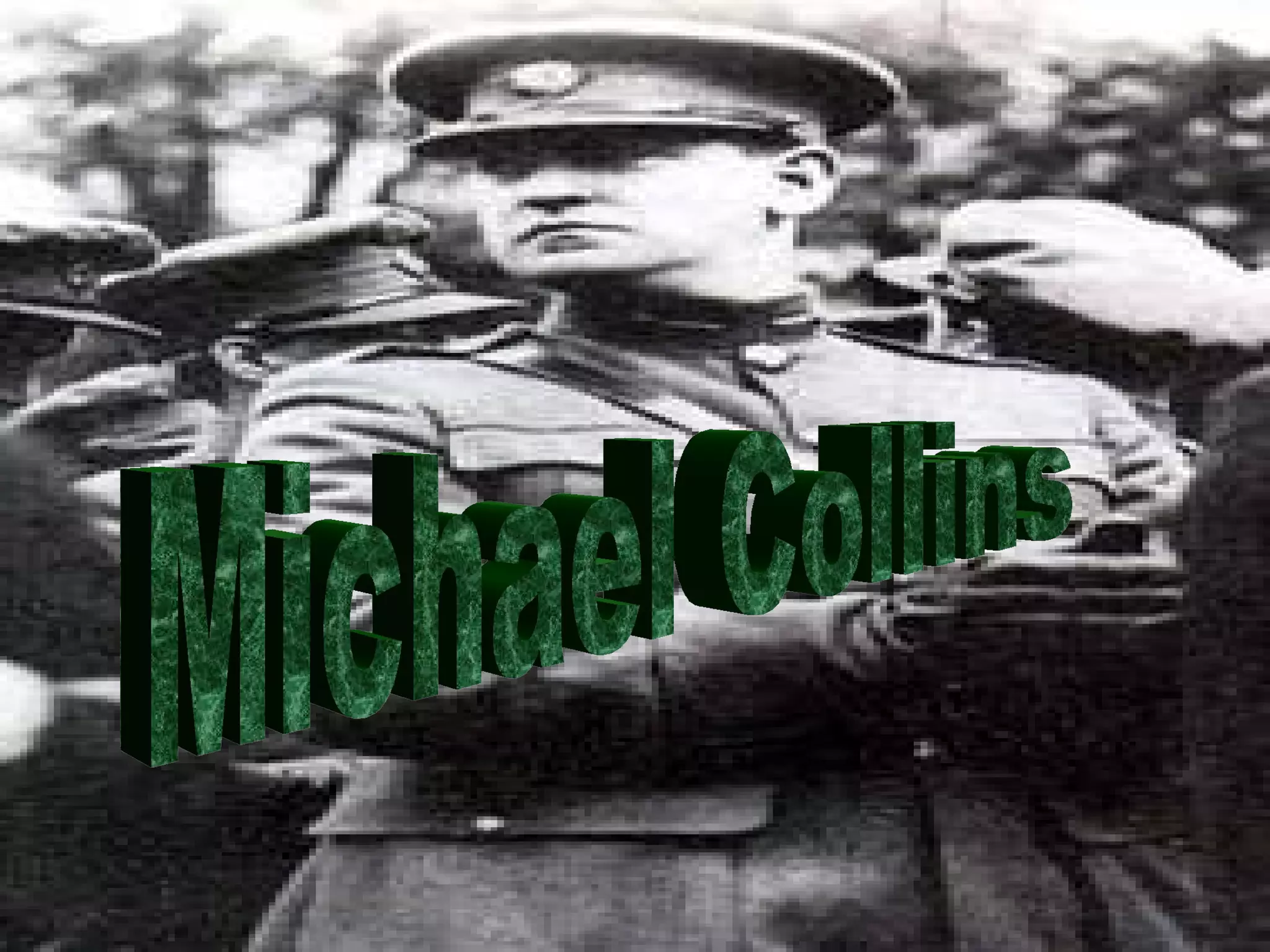 Michael Collins was born in 1890 in County Cork, Ireland. He had a difficult childhood, taking over the family farm at a young age after his father was killed. Collins joined the Irish Republican Brotherhood (IRB) and played an important role in the 1916 Easter Rising, leading troops and helping to acquire weapons. He later helped form the Irish Republican Army and served as the IRA's director of intelligence during the Irish War of Independence from 1919-1921. Collins negotiated the Anglo-Irish Treaty in 1921 that led to the establishment of the Irish Free State but partitioned Ireland. This caused a split in Sinn Fein and led to the Irish Civil War between Collins' pro-Treaty forces and those of Eamon