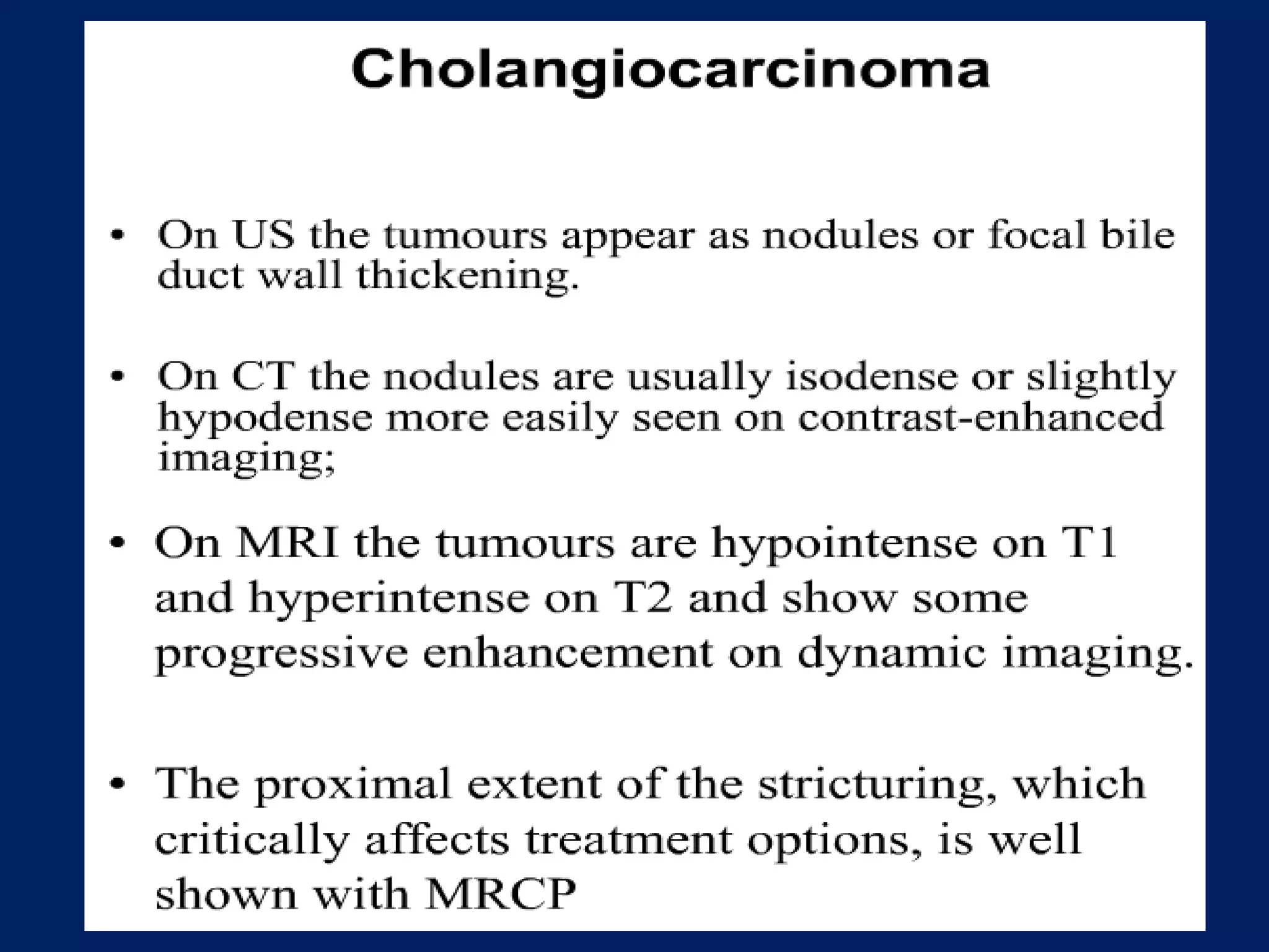 This document discusses imaging techniques for evaluating the biliary system. It covers common bile duct stones and Mirizzi's syndrome, which involves compression of the common bile duct by gallstones. It also mentions biliary cystadenoma, a type of cyst forming in the bile ducts or gallbladder.