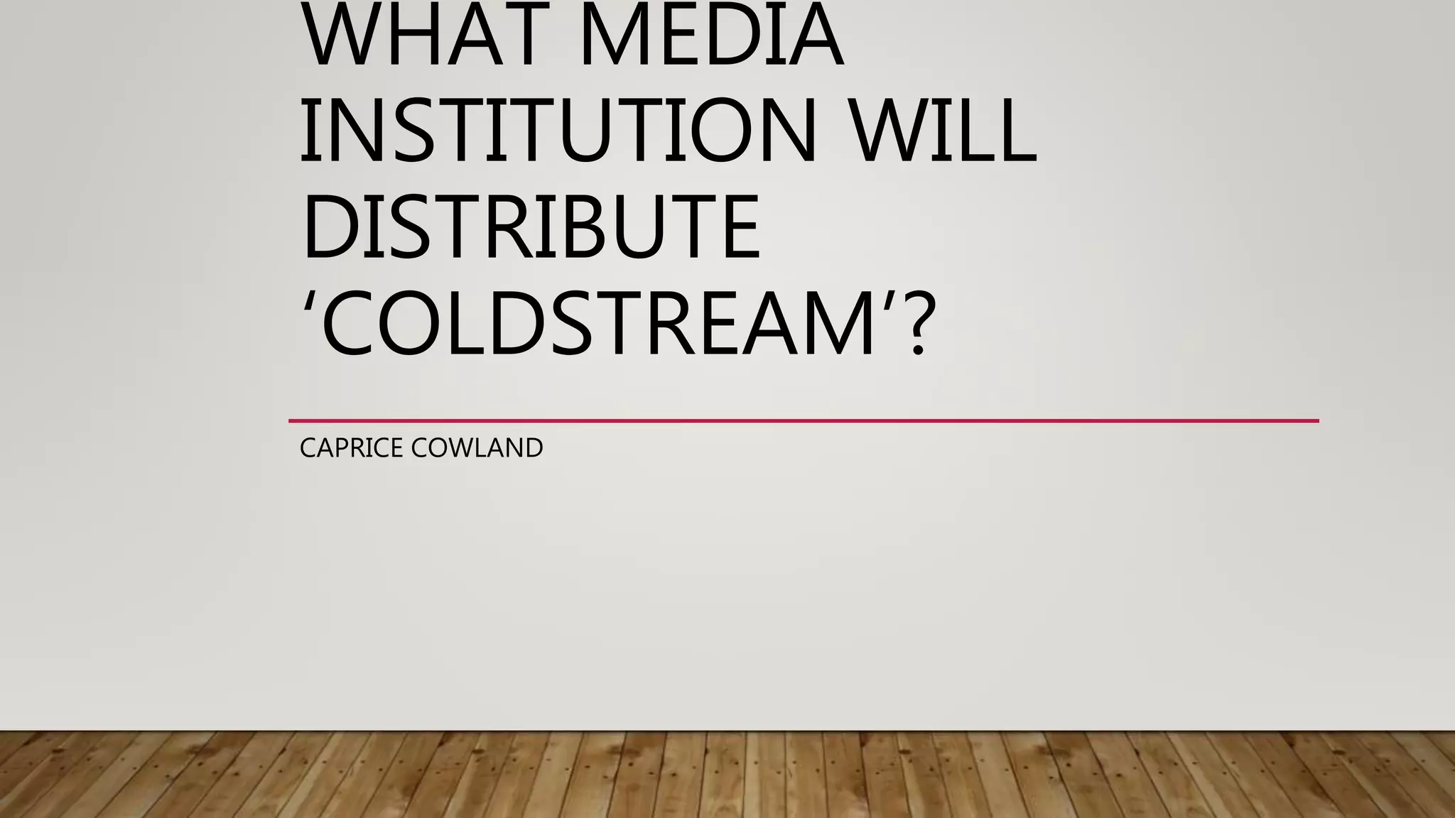 The document discusses potential media institutions to distribute the low-budget independent British film "Coldstream" based on its target audience of 15-25 year olds and limited budget. It considers Film 4, Vertigo Films, and Lionsgate as options, noting Film 4's Oscar-winning successes, Vertigo's diverse genres and box office hit Street Dance 3D, and Lionsgate's productions of The Hunger Games trilogy and Twilight saga films. Social media is suggested as a cost-effective marketing method for "Coldstream" to reach its target audience.