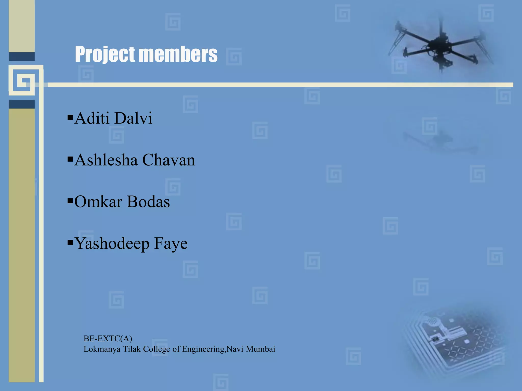 The document describes a project to create an autonomous flying surveillance robot (FSR) that can operate indoors and outdoors under any weather conditions. A group of 4 students from Lokmanya Tilak College of Engineering are developing the FSR. It will use a camera for aerial surveillance and inspection. Sensors and a PID control system will stabilize the flying robot and make it easier to control. The FSR has applications in hazardous environments, defense, security, inspections, and more.