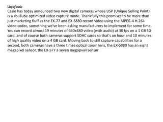 Casio has todayannounced two new digital cameras whose USP (Unique Selling Point) is