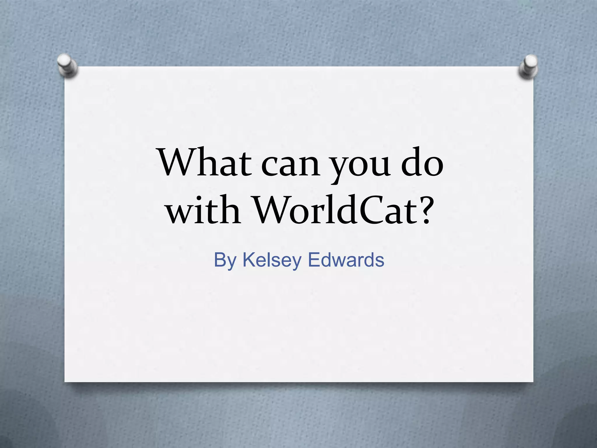 WorldCat is a library catalog that combines the collections of over 72,000 libraries in 170 countries. It allows users to search for books, articles, and other resources. Users can perform basic searches by keyword or more advanced searches by filtering results. WorldCat also enables users to check if a local library has an item, build bibliographies, read book reviews, and request items not available through WorldCat directly from their library.