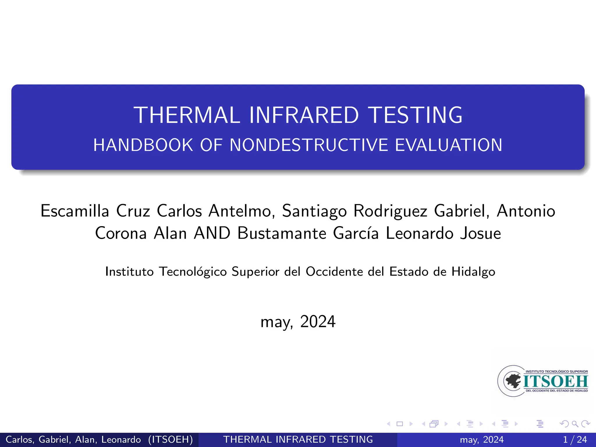The document is a handbook on thermal infrared testing, detailing its principles, equipment, techniques, and applications in various fields such as electronics and aerospace. It explains infrared thermography as a non-contact method for measuring temperatures by analyzing infrared radiation. Practical insights include components like lenses, detectors, and data processing electronics essential for conducting thermal inspections.