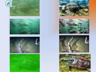 This document proposes a method for enhancing underwater images using color balancing, contrast stretching, and increasing sharpness. The method involves 4 steps: 1) white balancing using gray world algorithm, 2) simplest color balancing, 3) contrast enhancement using CLAHE, and 4) increasing sharpness. Experimental results on test images showed improved visual quality, contrast, and color after applying the proposed method. Quantitative analysis found the method achieved better PSNR and SSIM scores than an existing method in 66% of cases.