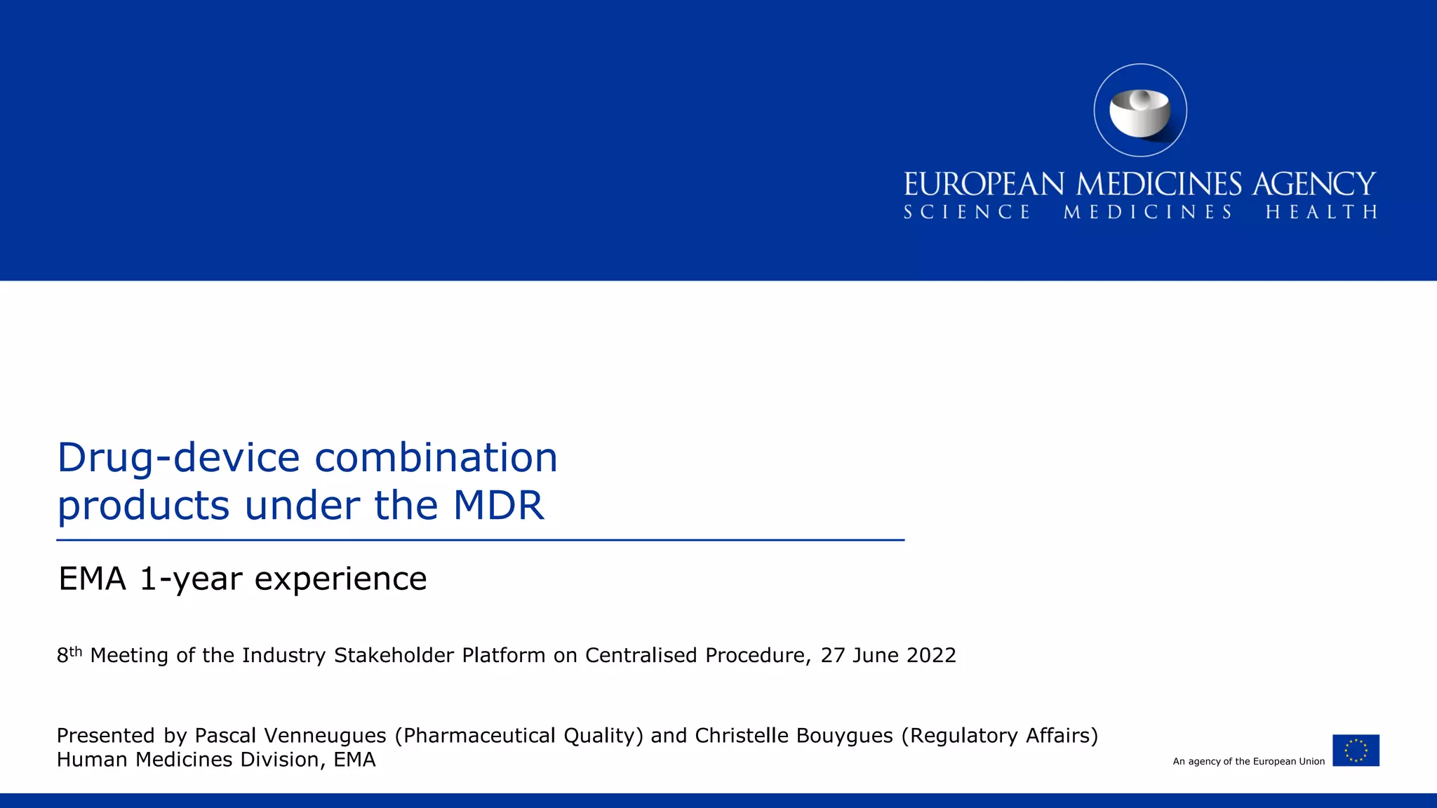 The European Medicines Agency has observed several challenges in the first year of implementing the Medical Device Regulation for drug-device combination products. Issues include inconsistent device classification, clarifying economic operator roles, and determining what constitutes a substantial device change requiring a new notified body opinion. The EMA is working to address these challenges through ongoing dialogue and plans to update guidance on the regulation.