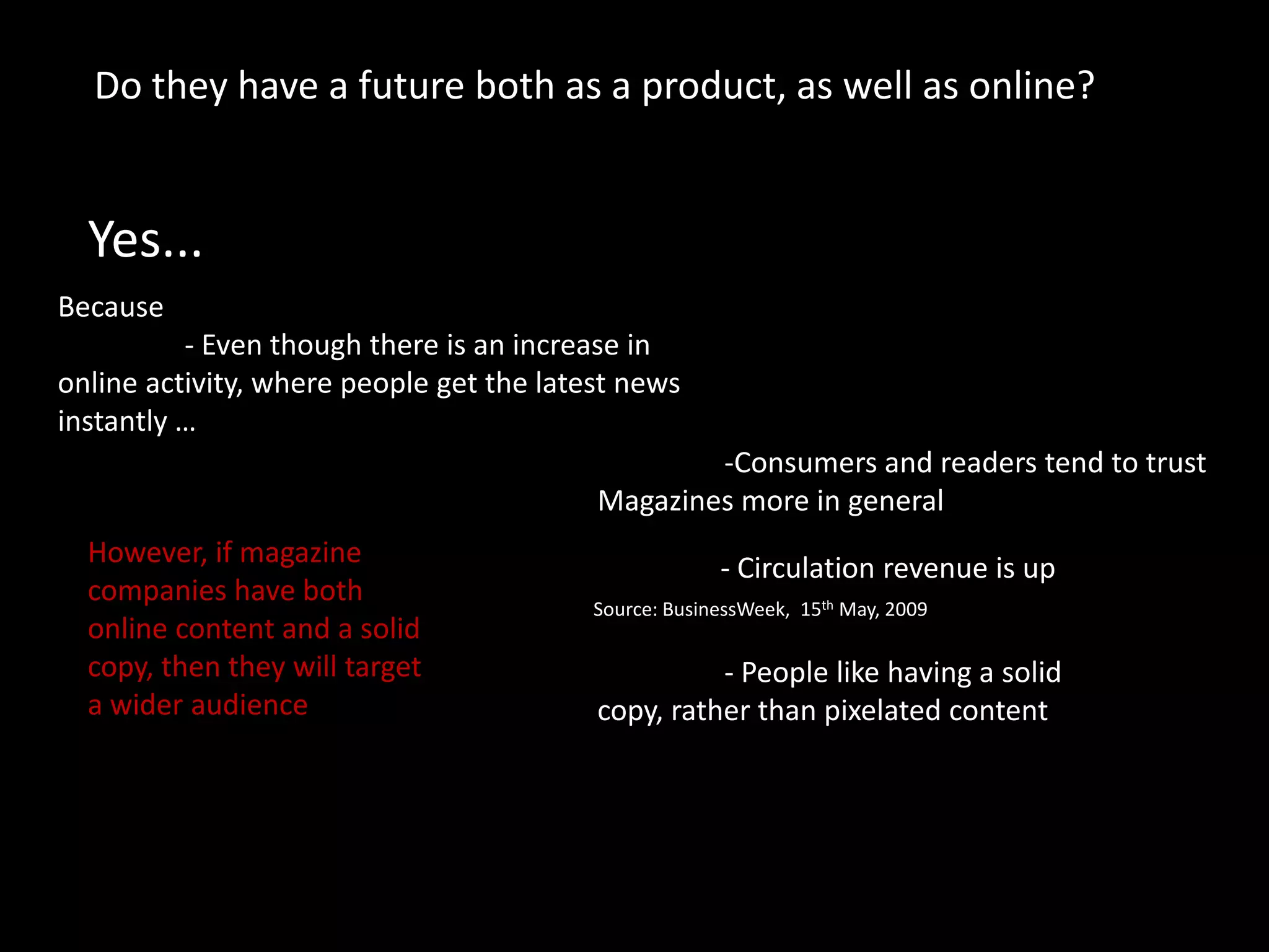 3) As long as magazine companies provide both print and online content, they can target a wider audience across media.