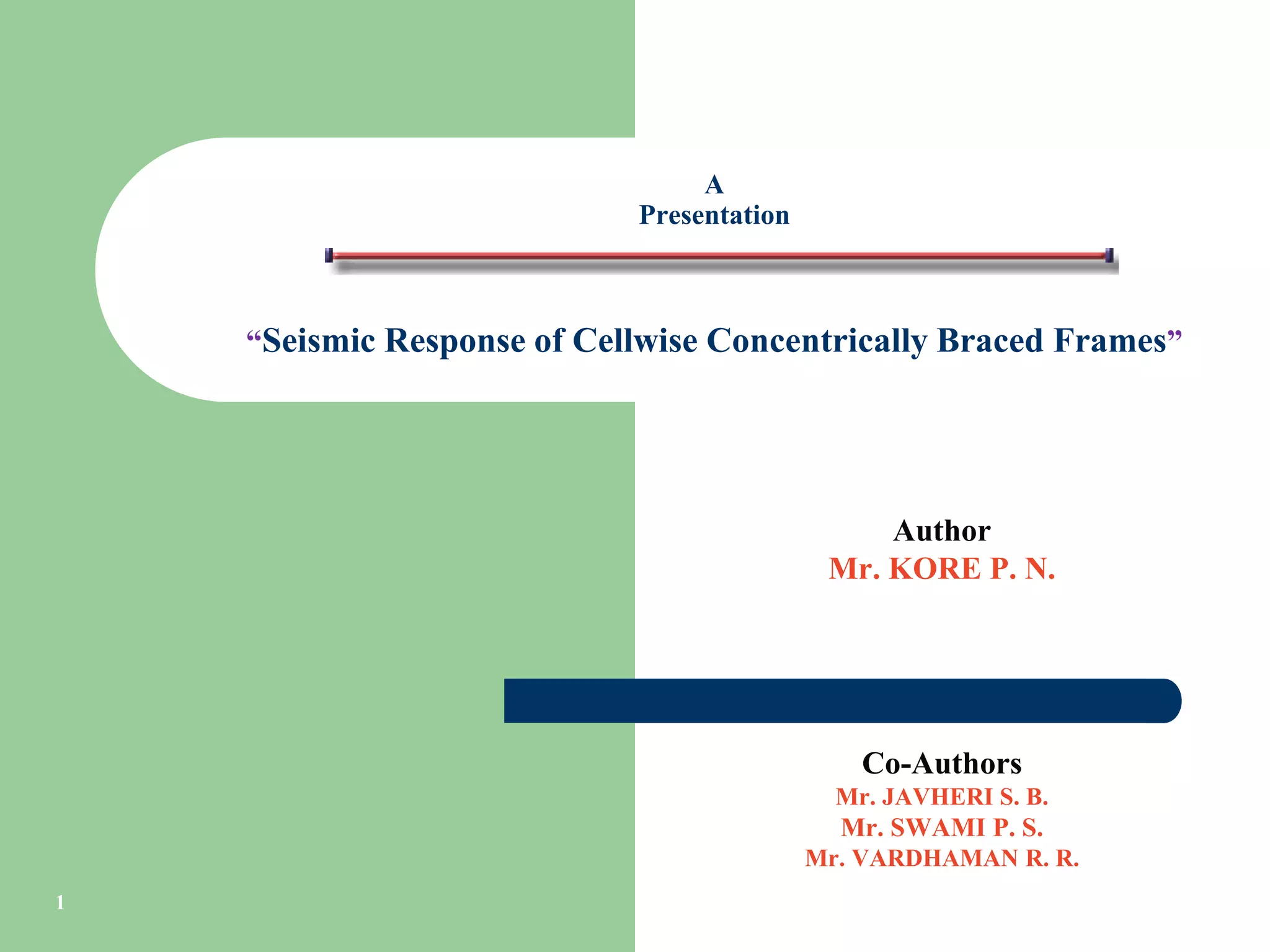 This presentation discusses the seismic response of cellwise concentrically braced frames. It introduces cellwise braced frames as a structural system that provides lateral stability through bracing elements arranged in cells within each bay. The document describes a study that analyzed 5 bay, 12 story reinforced concrete frames with different bracing configurations, including single-cell, two-cell, and three-cell arrangements. The study found that single-cell A-braced frames provided the highest material cost savings of up to 9.59% compared to bare frames. Two-cell and three-cell configurations further improved cost savings but required additional bracing. Overall, the study shows that optimally arranged cellwise braced frames produce a stiff, strong and econom