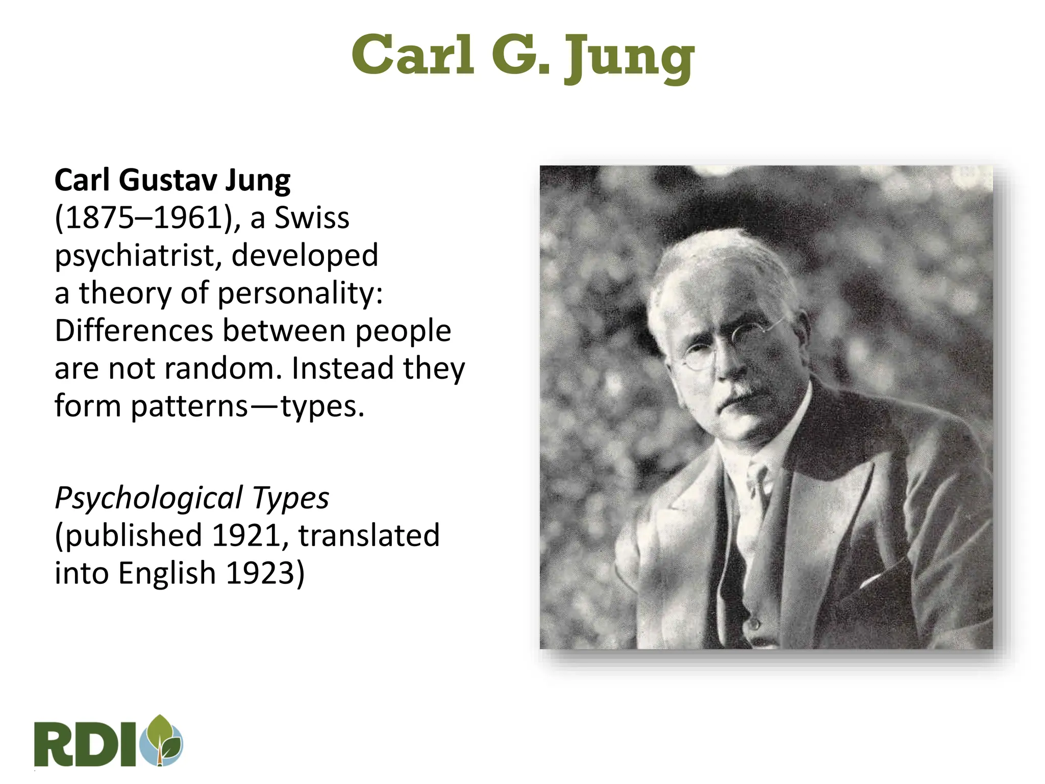 The document discusses Carl Jung's personality theory and the development of the Myers-Briggs Type Indicator (MBTI) by Katharine and Isabel Briggs Myers. It outlines how people have innate preferences for different mental processes through four dichotomies: Extraversion vs. Introversion, Sensing vs. Intuition, Thinking vs. Feeling, and Judging vs. Perceiving. These preferences inform one of 16 personality types, which are not indicative of skill but rather natural tendencies shaped by both innate factors and environmental influences.