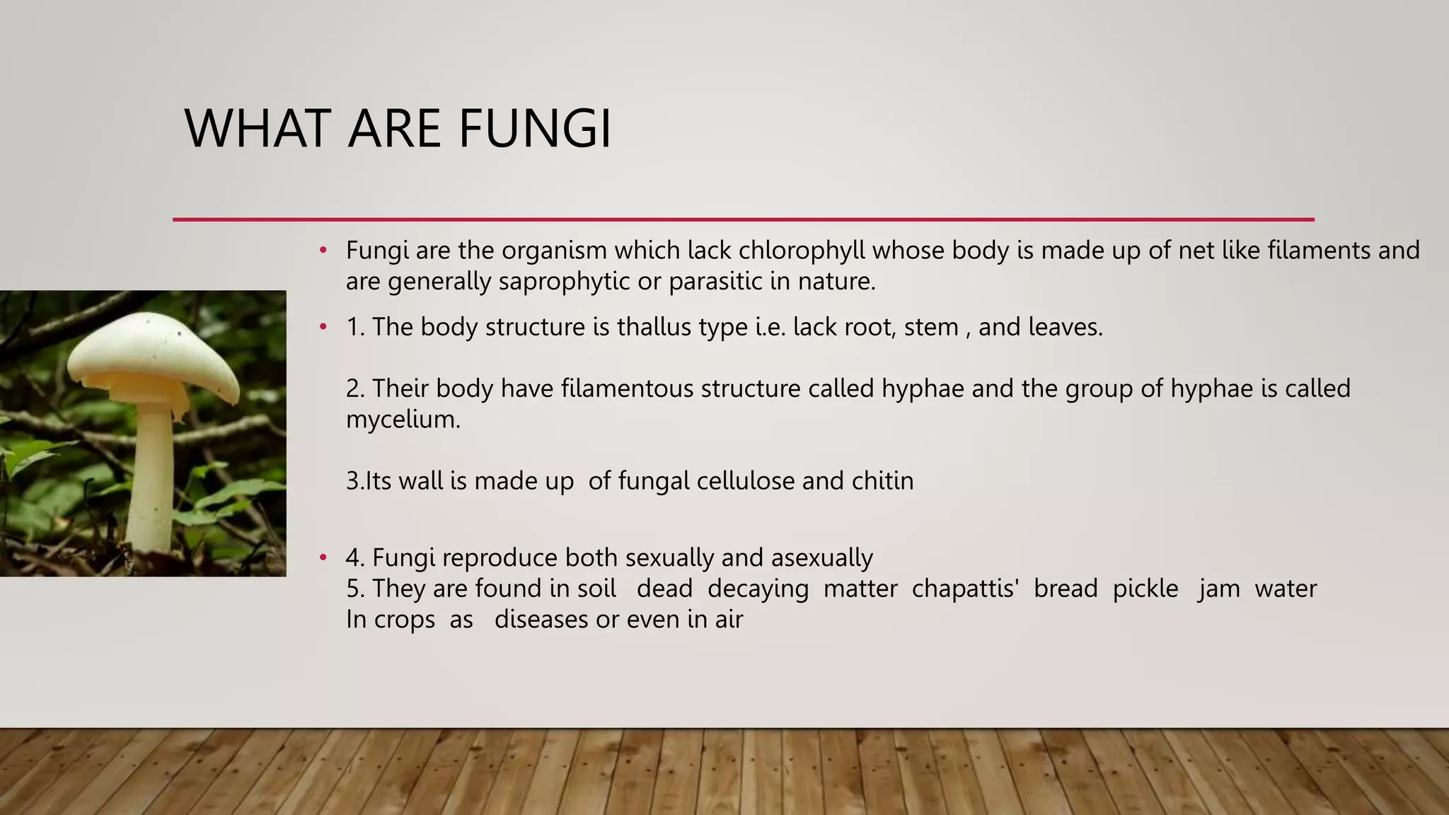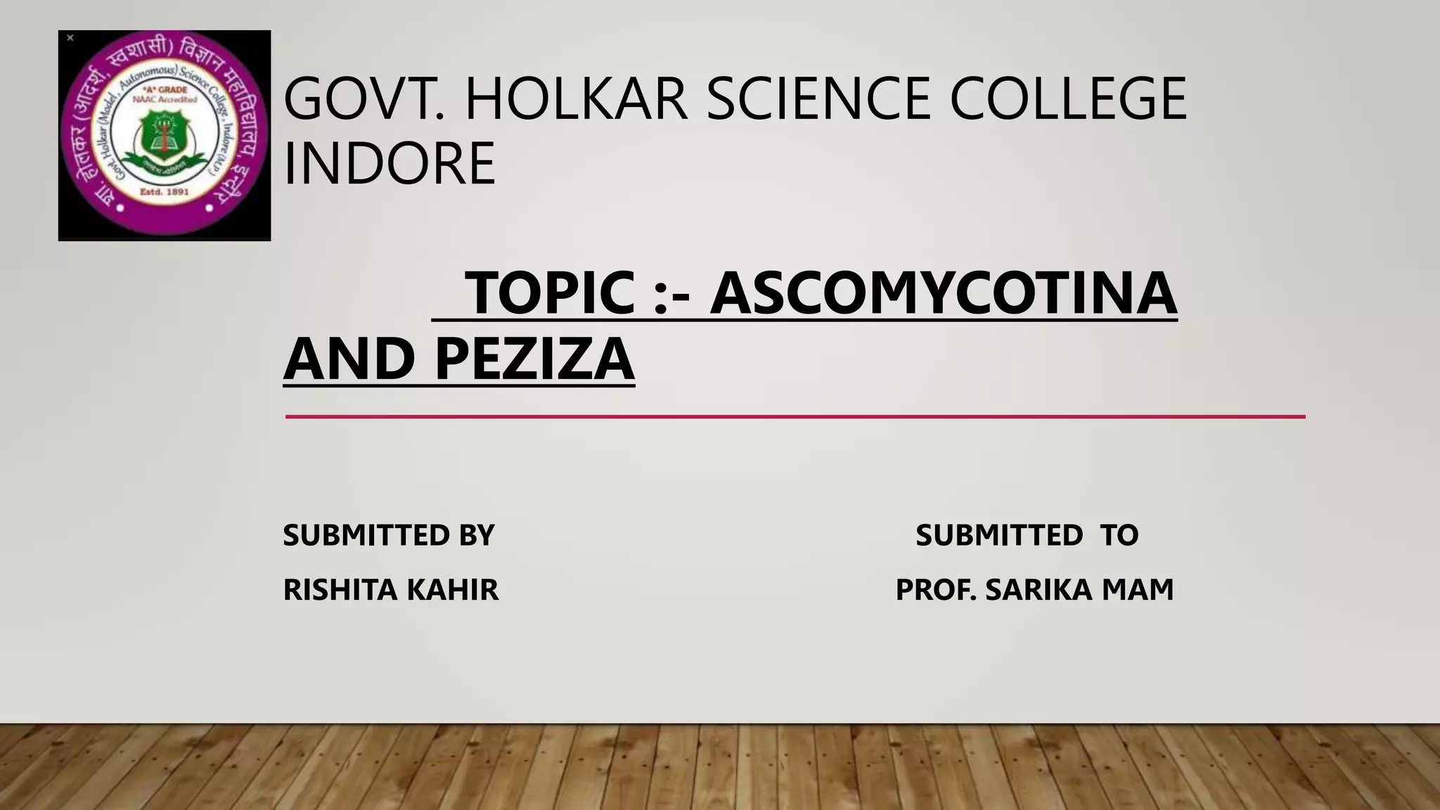 Fungi are organisms that lack chlorophyll and have filamentous structures called hyphae. The phylum Ascomycota, or sac fungi, is the largest group of fungi and includes the genus Peziza. Peziza species are cup-shaped fungi that grow on dung, rotting wood, and soil. They reproduce both sexually, forming ascospores within asci, and asexually through conidia and chlamydospores. Peziza plays roles in decomposition and forms mycorrhizal relationships with plants.