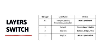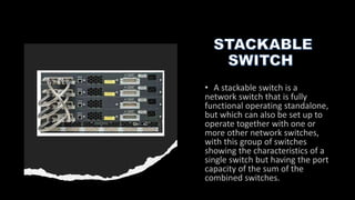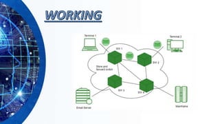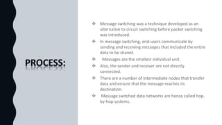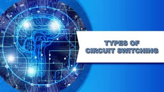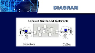 This document contains information about different types of circuit switched networks presented by various group members. It discusses space division switching and time division switching. Space division switching establishes a dedicated path between calling and called subscribers for the duration of the call, using crossbar switches to connect circuits. Time division switching transmits incoming and outgoing signals in different time slots at digital switch inputs and outputs. The document also provides examples of applications that use circuit switching such as PSTN, PBX systems, and private WANs.