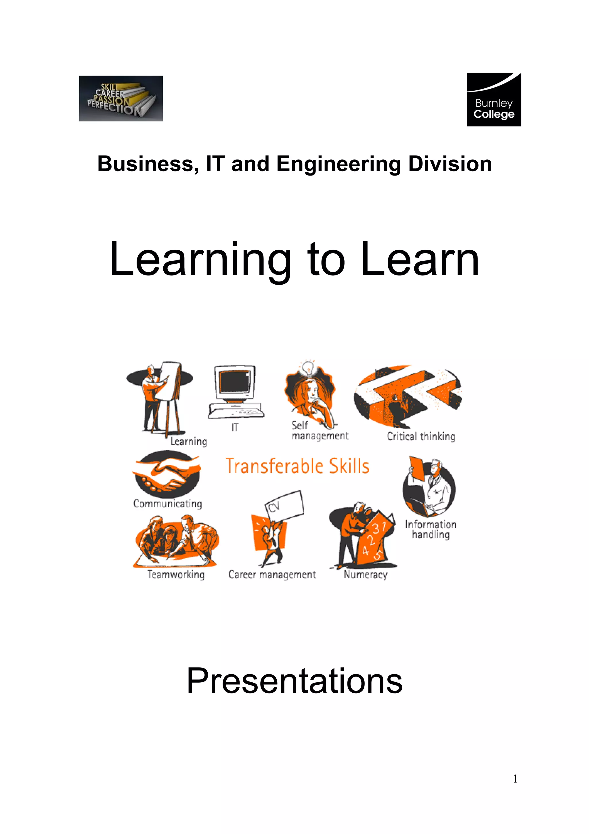 This document provides guidance on preparing and delivering presentations. It discusses initial considerations like understanding the audience and time limits. It recommends preparing by researching the topic, planning the structure and main points, and practicing. When giving the presentation, the document advises speaking clearly, making eye contact, staying within the time limit, and being confident. The goal is to tell the audience what will be covered, cover it, and then summarize what was covered.