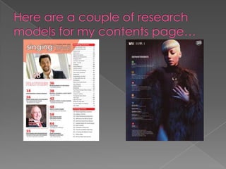 The document provides details on the design process for a magazine cover and contents page. It explains design choices made at each stage, including using unconventional headlines and mastheads to attract audiences, matching images to cover lines to guide readers, and ordering information simply with headings and boxes. Color schemes and fonts are also carried throughout stages for consistency. Key goals were showing gospel progression appealingly and relating content to target youth audiences.