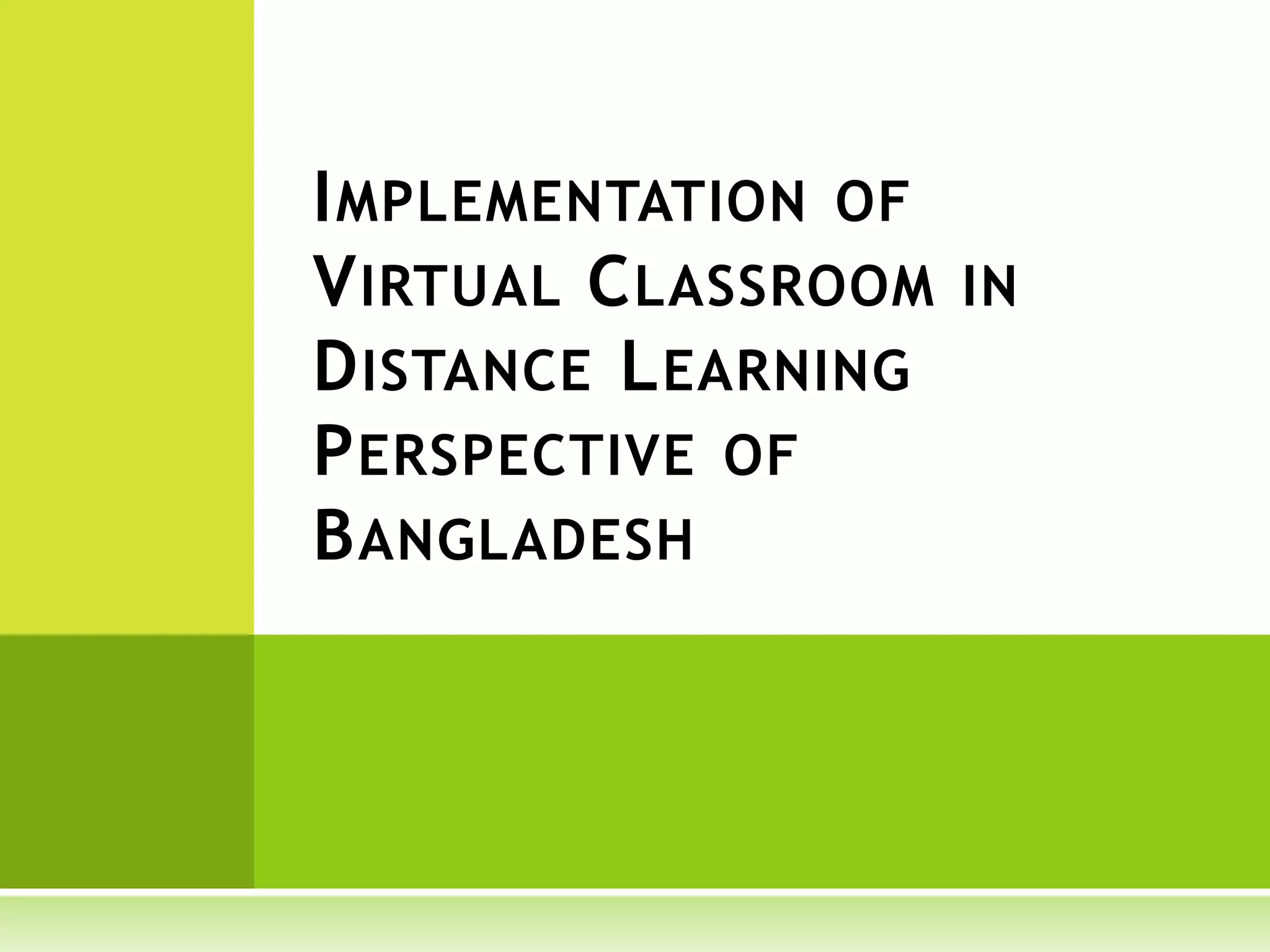 The document outlines the implementation of a virtual classroom for distance learning in Bangladesh. It discusses the conceptual background of virtual classrooms and their key characteristics like interactivity, synchrony, and sense of community. It then describes 10 steps for implementing a virtual classroom in Bangladesh, including assessing needs, estimating costs, planning classroom goals, designing the structure, preparing content, enabling communication tools, setting up online assessments, managing the class, setting up required hardware/software, and maintaining the system over time. The overall goal of the project described is to use mobile technologies to create an interactive virtual learning environment for remote students in Bangladesh.