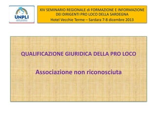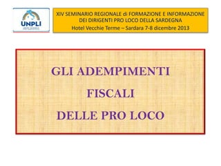 Il documento discute le responsabilità fiscali e giuridiche delle pro loco in Sardegna, sottolineando che esse sono enti non commerciali con autonomia patrimoniale imperfetta. Viene evidenziato che gli amministratori possono essere ritenuti responsabili per debiti fiscali anche dopo aver cessato l'incarico, e che la qualifica di ente non commerciale può essere persa se si superano certi limiti di attività commerciale. Infine, si forniscono dettagli sulle modalità per richiedere la partita IVA e le agevolazioni fiscali disponibili per le pro loco.