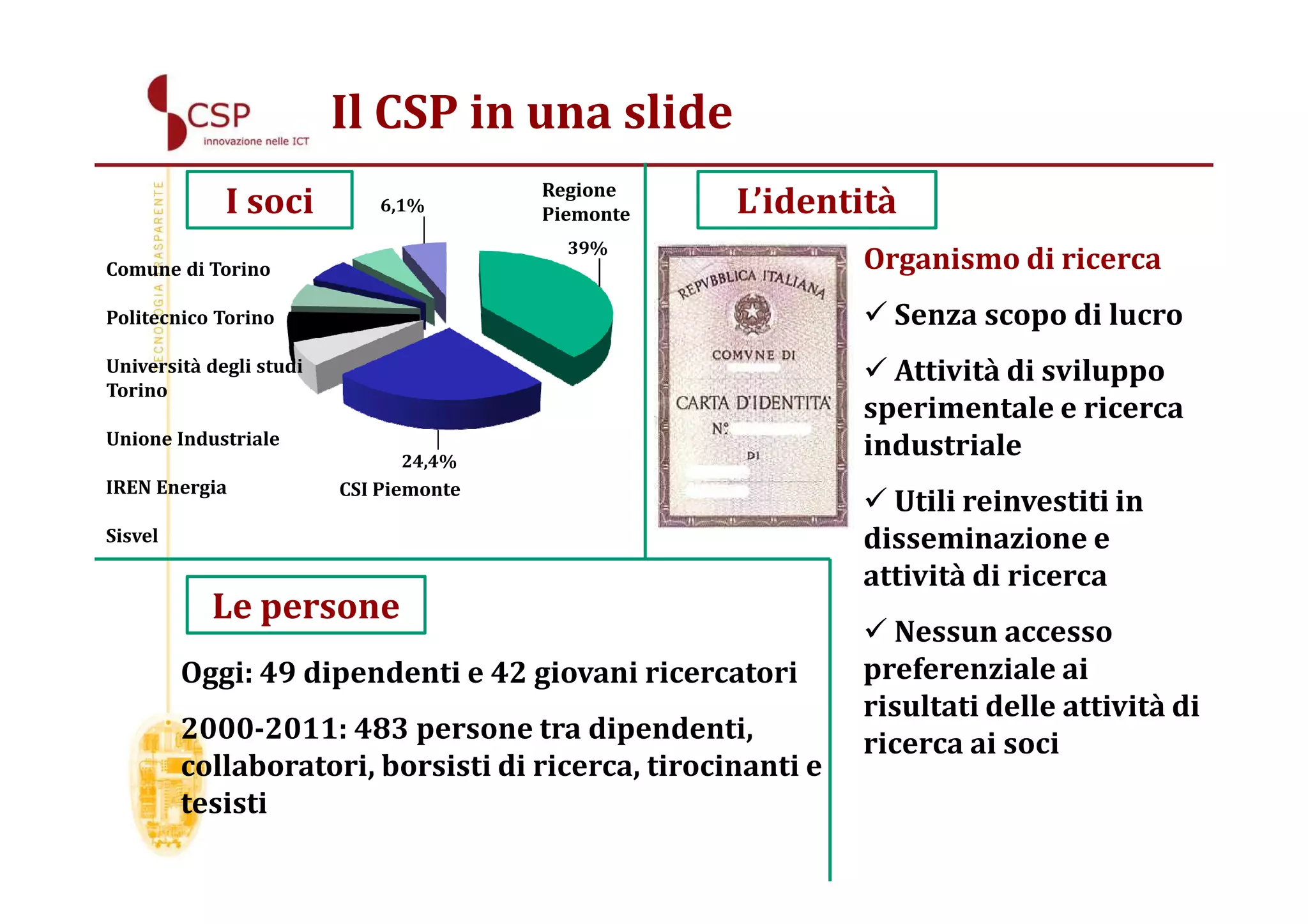 Il documento descrive il ruolo del CSP nella promozione dell'innovazione nelle ICT e nel settore delle industrie creative in Piemonte, evidenziando la crescita del valore e l'occupazione nell'area. Include dati sui progetti realizzati, le infrastrutture e le opportunità di business innovative. Viene inoltre sottolineata l'importanza di modelli di business user-centric e tecnologie accessibili e innovative.