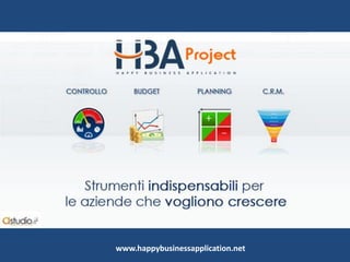 HBA Project è un'applicazione web gratuita per piccole e medie imprese, che offre strumenti di analisi, pianificazione e controllo per migliorare le performance aziendali. Comprende un'interfaccia dashboard e tre moduli operativi: budget, planning e CRM, che aiutano nella pianificazione finanziaria, strategica di marketing e gestione delle relazioni con i clienti. È destinato a manager e imprenditori, fornendo accesso attraverso una 'personal cloud' per facilitare l'utilizzo da vari dispositivi.