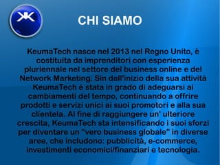 Keumatech, fondata nel 2013 nel Regno Unito, è un'azienda esperta nel business online e nel network marketing, che mira a diventare un business globale in vari settori, tra cui pubblicità ed e-commerce. La missione dell'azienda è sviluppare e distribuire servizi innovativi, in particolare nel campo della pubblicità online e dei corsi formativi. Keumatech offre piani di sottoscrizione annuale e distribuisce bonus passivi ai membri in base al fatturato globale.