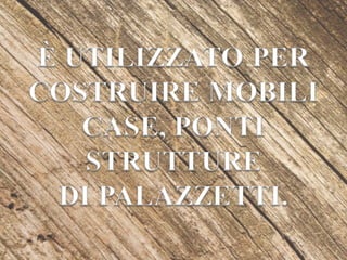 Il documento fornisce una panoramica dettagliata sul legno, descrivendo la sua composizione, il processo di produzione del legname, e le proprietà fisiche, meccaniche e tecnologiche del legno stesso. Vengono inoltre evidenziati i difetti dei legnami e i vari prodotti derivati come compensato, multistrato e truciolato, insieme ai processi di lavorazione e utilizzo. Infine, si discutono le tecniche di essiccazione e stagionatura per garantire la qualità del legno.