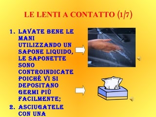 Il documento fornisce istruzioni dettagliate su come applicare e rimuovere correttamente le lenti a contatto, enfatizzando l'importanza dell'igiene e di seguire procedure specifiche. Viene anche evidenziata la crescente diffusione delle lenti a contatto nel tempo e offre consigli aggiuntivi su come prendersi cura delle lenti e sulla loro durata. Infine, si avverte di non utilizzare le lenti in caso di danni o irritazioni oculari.