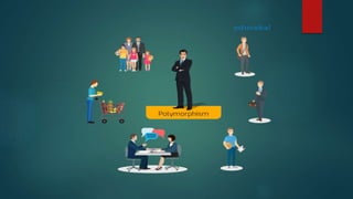 This document discusses polymorphism in object-oriented programming. It defines polymorphism as a Greek word meaning "many forms" where classes related by inheritance can take on different forms. There are two types of polymorphism: compile-time polymorphism achieved through method overloading where methods have the same name but different parameters, and runtime polymorphism achieved through method overriding where subclasses override methods from the parent class and the overridden method is called based on the object's type. An example is provided where Dog and Cat classes override the makeSound method from the Animal class, and calling makeSound on a Dog or Cat object results in the subclass's overridden method being invoked.