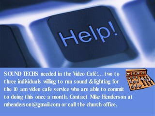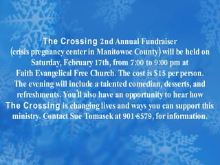 The document contains announcements about various community and church events, including a newcomers lunch, basketball games, bible study, and a "manly man" tailgate party and football game on February 4th. It also includes information about a mercy ministry offering prayer support and contacts for hospital or doctor appointments.