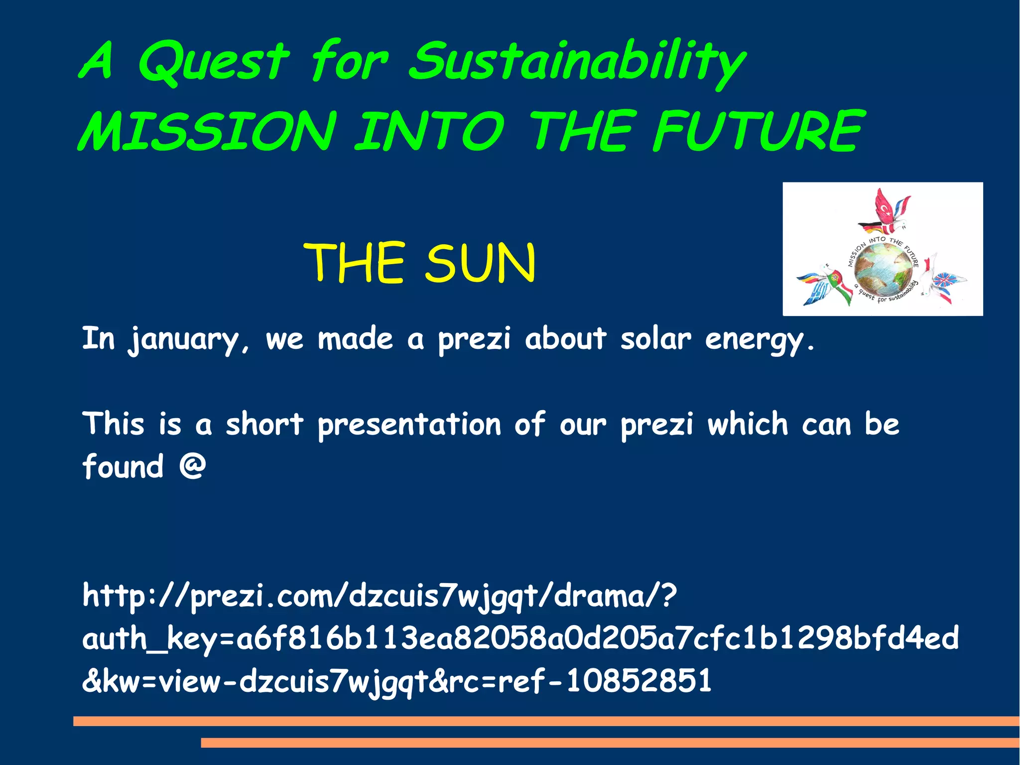 The document summarizes a student presentation about solar energy projects, including visiting a large solar furnace facility in France capable of reaching 3,500°C, building a solar cooker, and constructing a "fun-panel" that harnesses solar power. The presentation can be viewed at a provided URL.