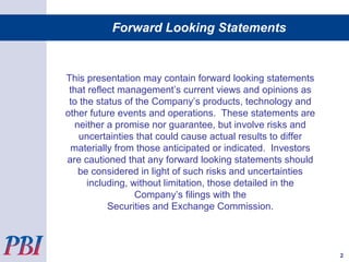 This presentation by Pressure BioSciences discusses their Pressure Cycling Technology platform for biological sample preparation. Some key points: