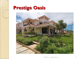 The document contains repeated references to 'Prestige Oasis' along with links to the website bangalore5.com, indicating it may pertain to a real estate project in Bangalore. Dates mentioned suggest updates or listings dated March 10, 2016. It includes links for more information about villa houses in Bangalore and specific project details.