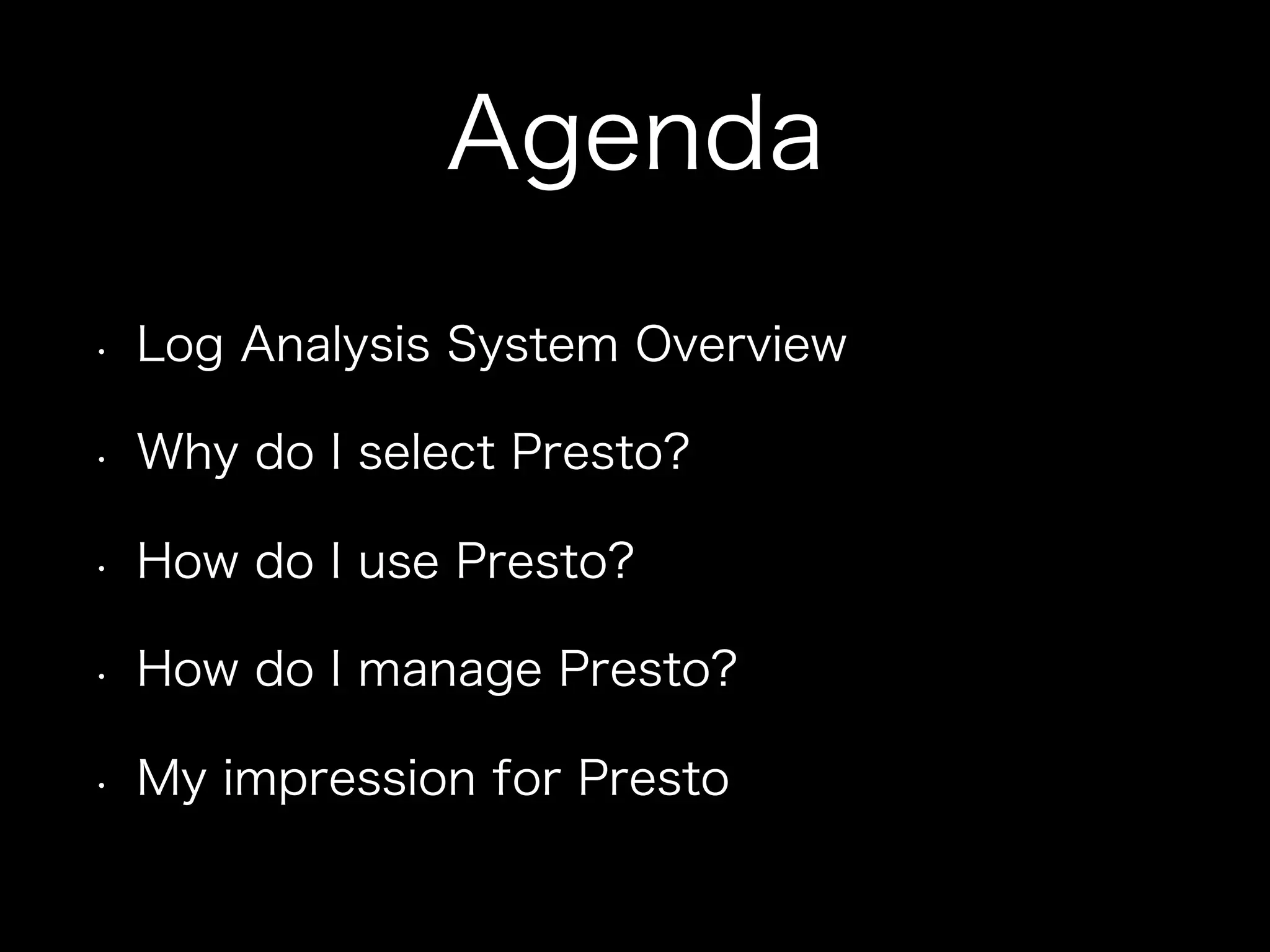 The document summarizes the speaker's use of Presto for log analysis. Key points include:
