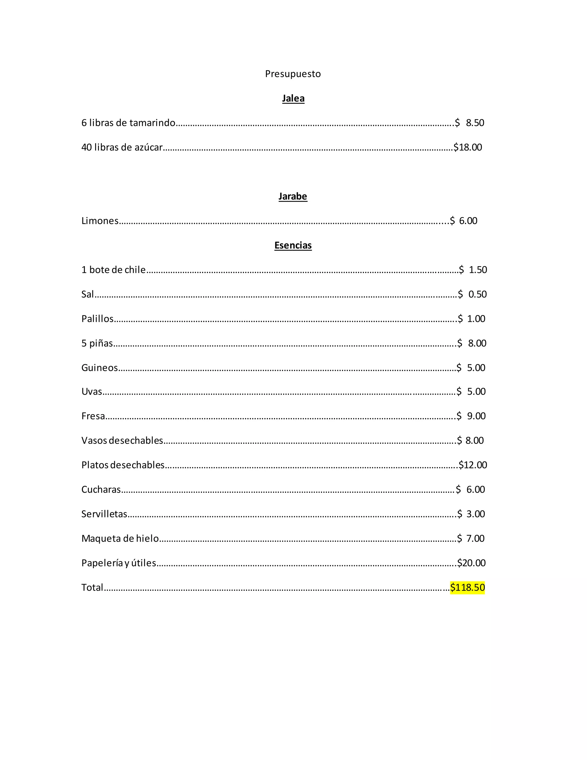 Vasosdesechables…………………………………………………………………………………………………………..$ 8.00