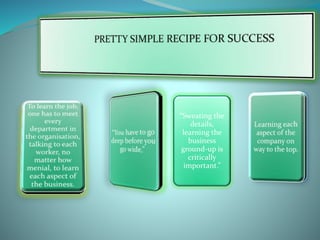 Focus on excelling at your current job rather than focusing on future roles. Get to know your organization inside and out by learning the details of the business from the ground up. Make logical decisions by gaining a deep understanding of the company in order to ensure its success. Develop the ability to break down complicated issues into fundamental parts and find simple solutions.