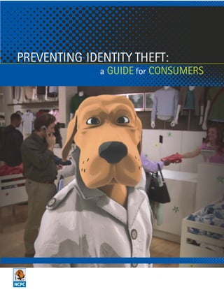 This document provides information and tips about preventing identity theft. It begins by defining identity theft as a crime where someone wrongfully obtains and uses another person's personal data, typically for economic gain. It then shares some key statistics, such as nearly 10 million incidents of identity theft occurring in the US in 2004, costing consumers $5 billion. The document outlines common identity theft crimes and scams, such as stealing mail, lifting personal details from checks, or using someone's information without permission. It aims to educate readers on the threats and help them protect their personal data.
