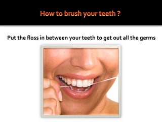 The document discusses definitions of health, public health, and dental public health from various organizations. It then discusses preventive dentistry and focuses on dental caries, periodontal disease, and factors that can predispose individuals to these diseases. It provides information on cheese and its potential role in preventing dental caries. Finally, it discusses proper toothbrushing techniques and the importance of oral hygiene in maintaining dental health.
