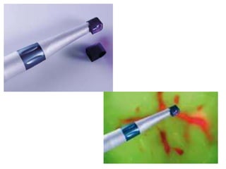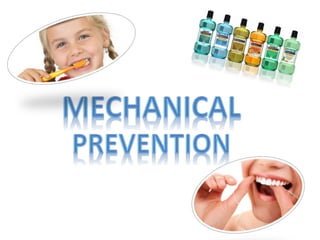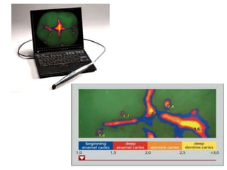 This document summarizes techniques for preventive dentistry and early caries detection. It discusses various methods for prevention including tooth brushing, flossing, mouthwash, pit and fissure sealants, xylitol gum, fluoride treatments, and diet control. For caries detection, it describes traditional examination methods, saliva tests, caries detection dye, radiographs, laser fluorescence devices, and fiber optic transillumination. The document provides details on popular products and techniques used for each preventive and detection method.