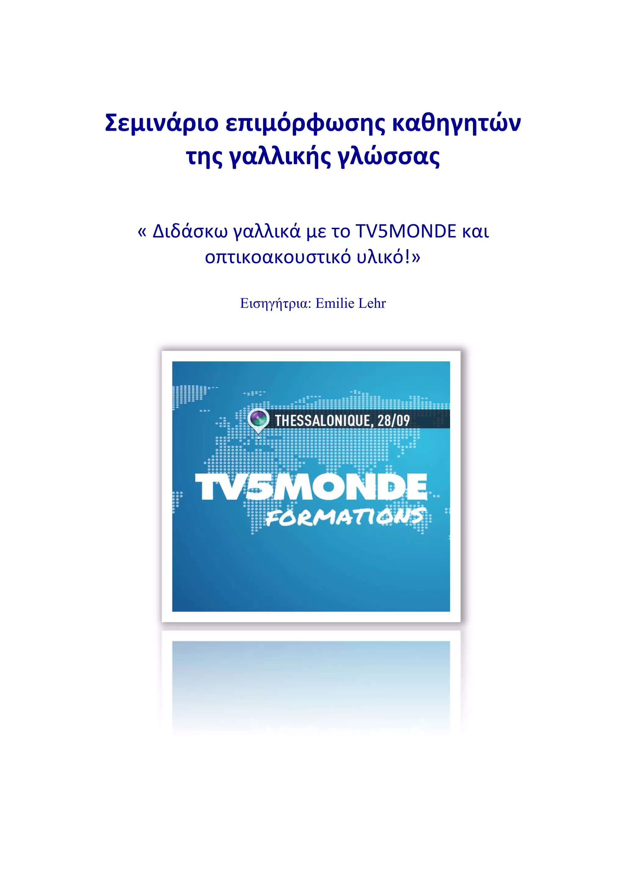 µε το TV5MONDE στην επιµόρφωση των διδασκόντων και των